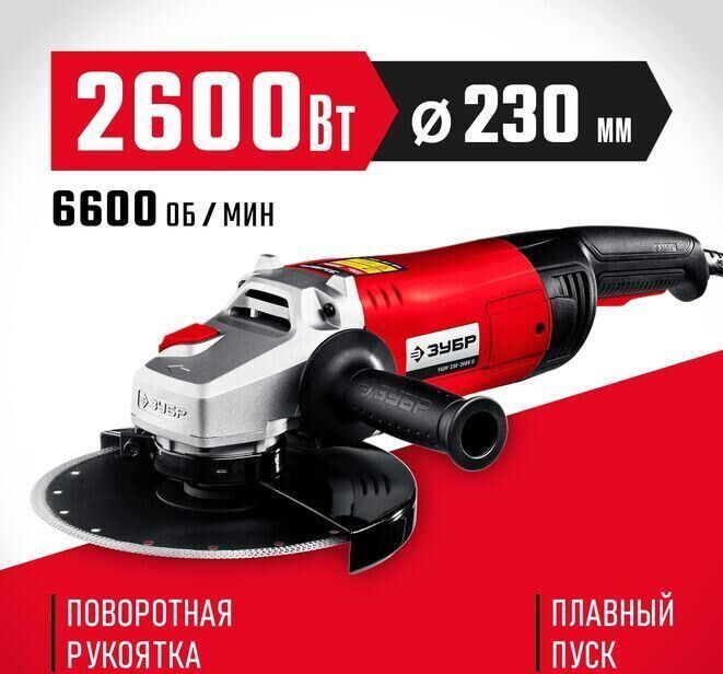 ЗУБР 2600 Вт, d230 мм, УШМ (УШМ-230-2605 П)