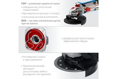 Мощность, Вт: 900 Диаметр диска, мм: 125 Посадочный диаметр, мм: 22.2 Max число оборотов, об/мин: 11000 Быстрозажимная гайка SDS: нет Длина кабеля, м: 3 Вес, кг: 2,2 Габариты, мм: 290х120х210 Работа по бетону (камню): есть Суперфланец: есть Блокировка шпинделя при заклинивании диска: нет Защита от непреднамеренного пуска: нет Наличие виброручки: нет Плавный пуск: нет Поддержание постоянных оборотов под нагрузкой: нет Серия: Профессионал КОМПЛЕКТАЦИЯ: Углошлифовальная машина - 1 шт. Кожух защитный - 1 шт. Рукоятка дополнительная - 1 шт. Ключ специальный - 1 шт. Руководство по эксплуатации - 1 экз.