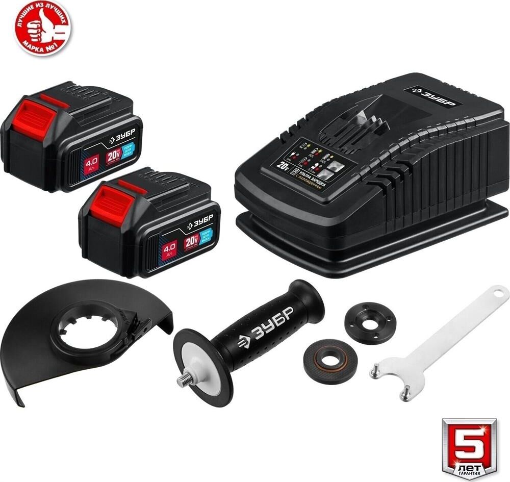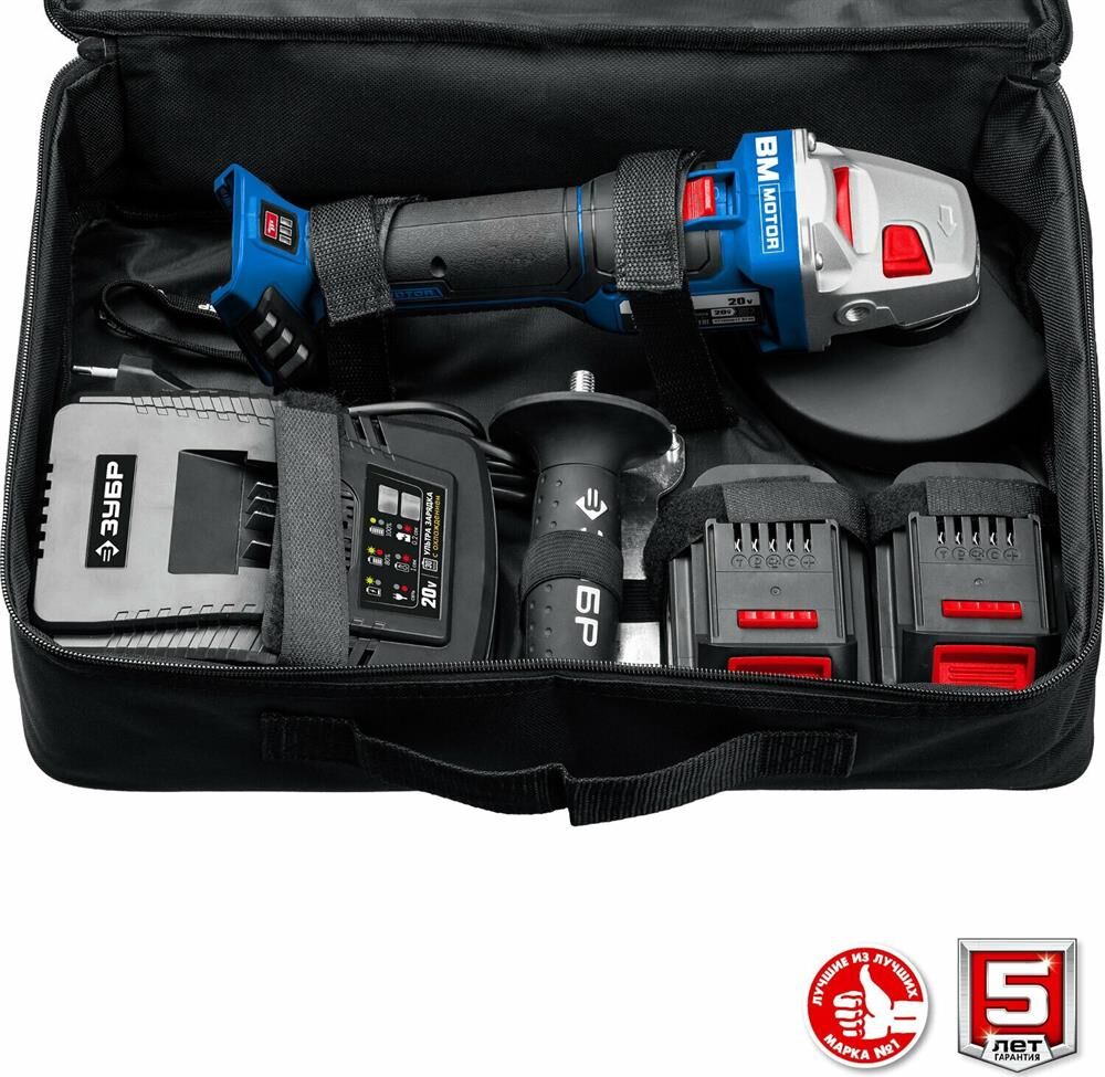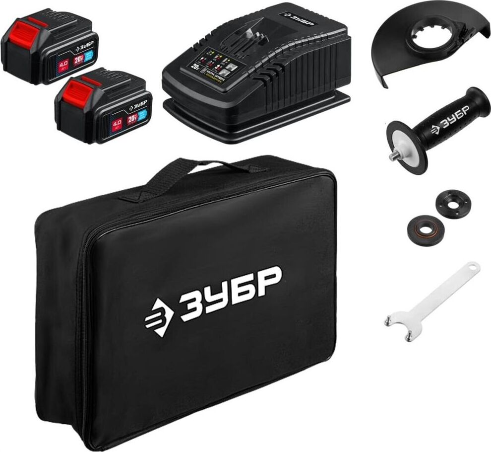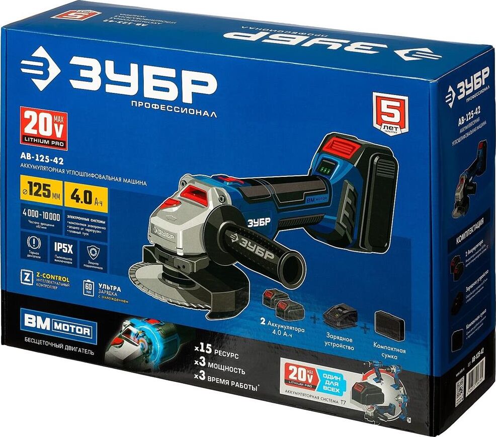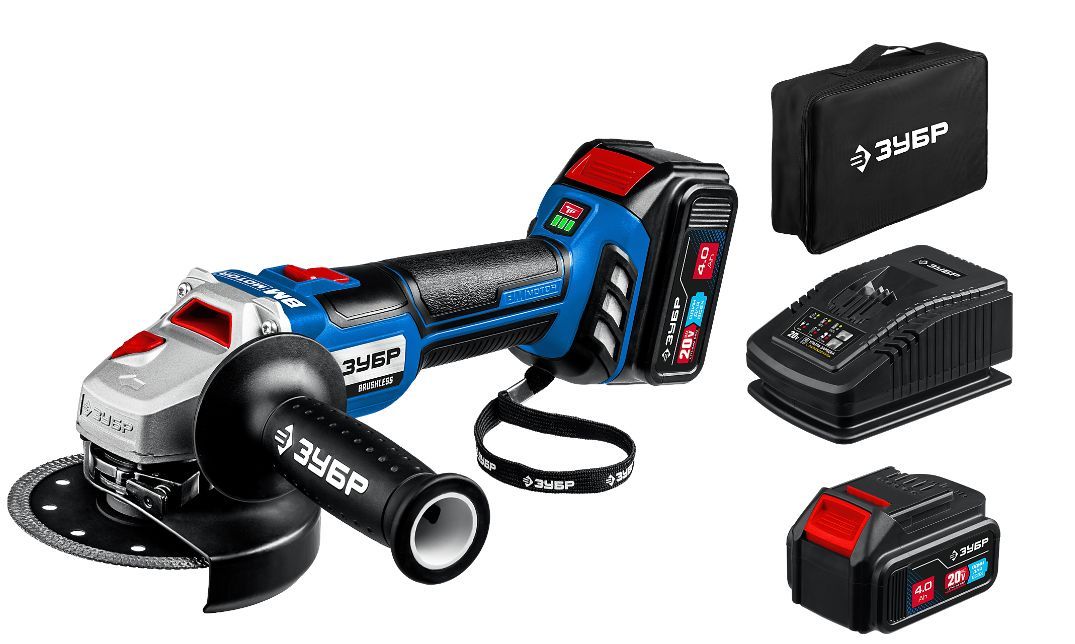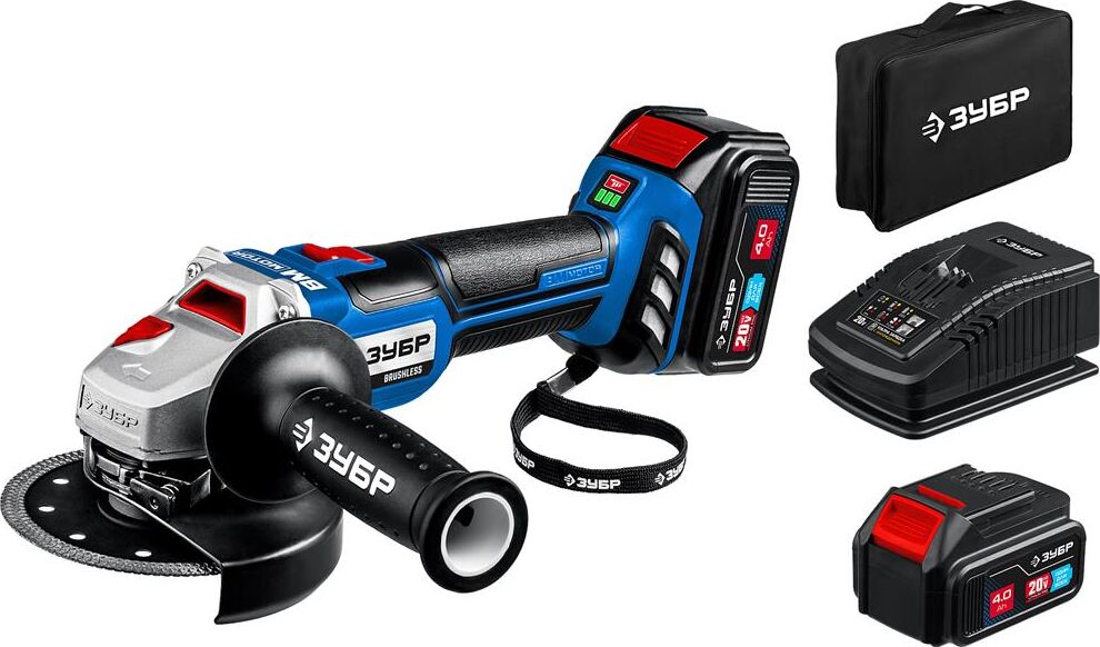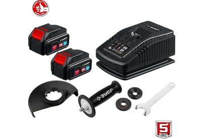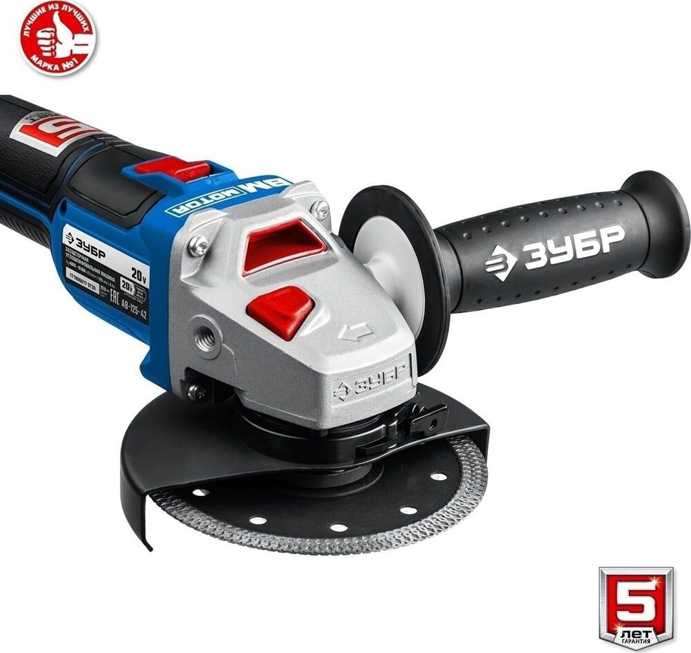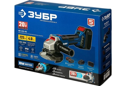 ЗУБР AB-125-42 20В бесщеточная УШМ, 2 АКБ (4Ач), в сумке, Профессионал.