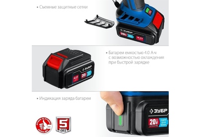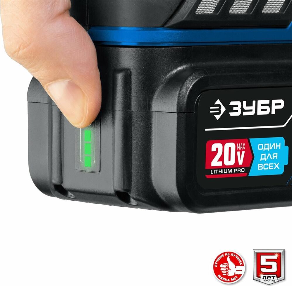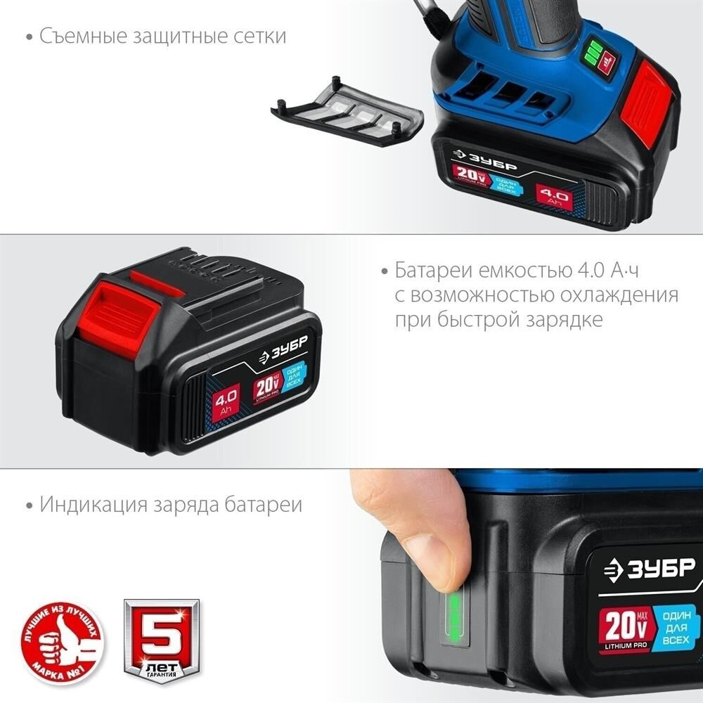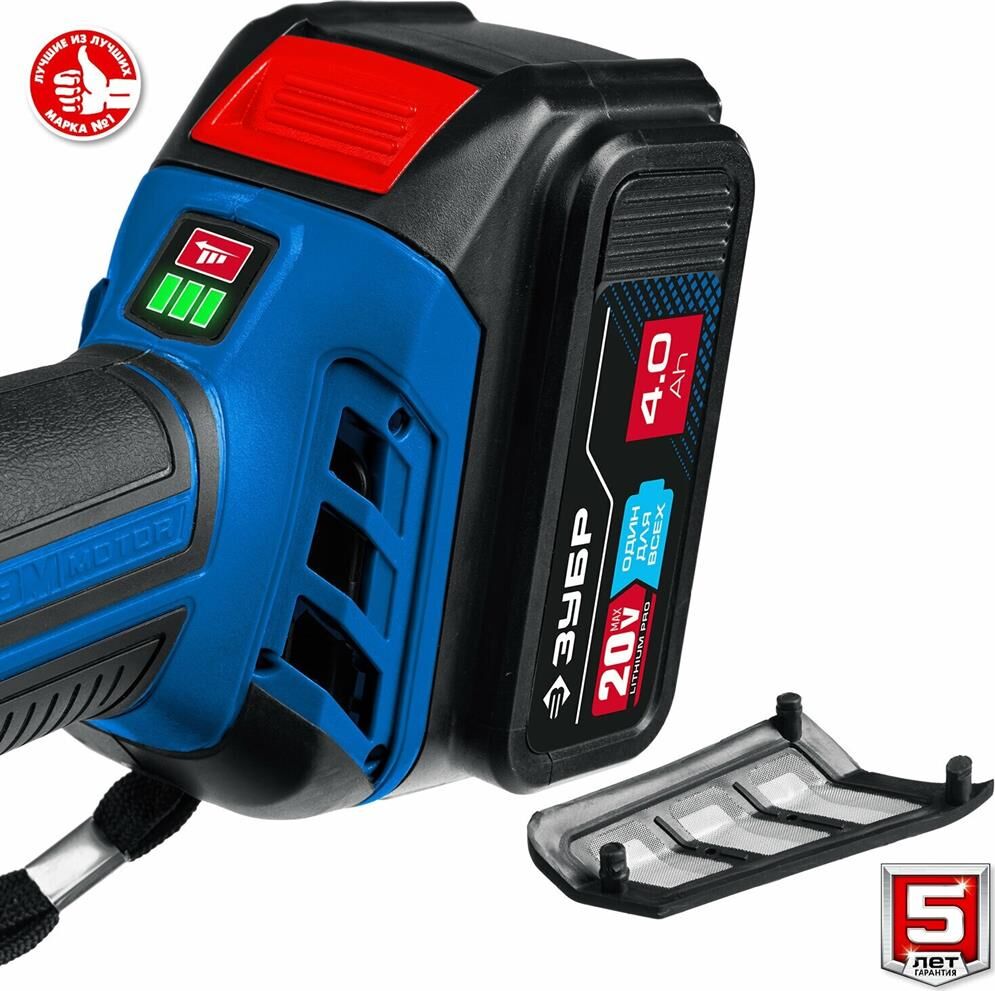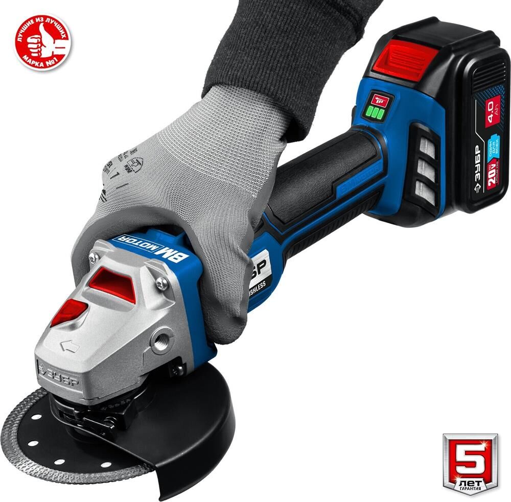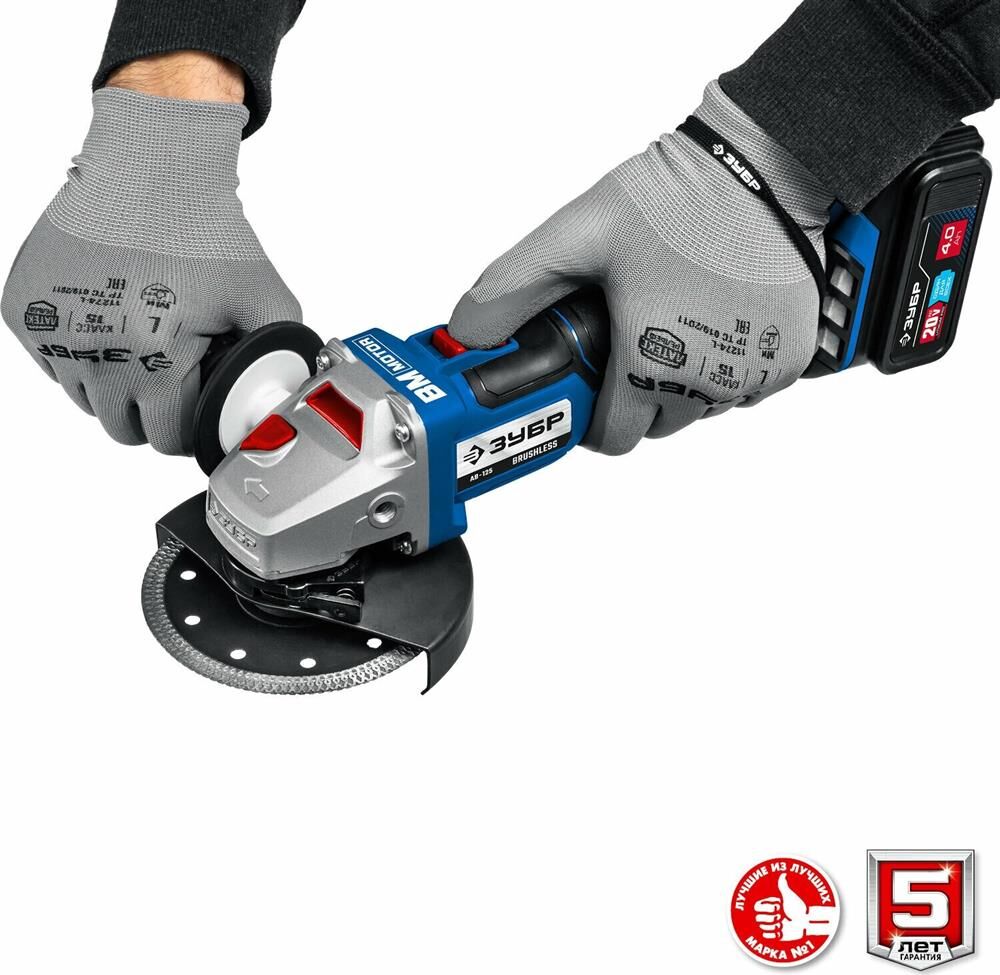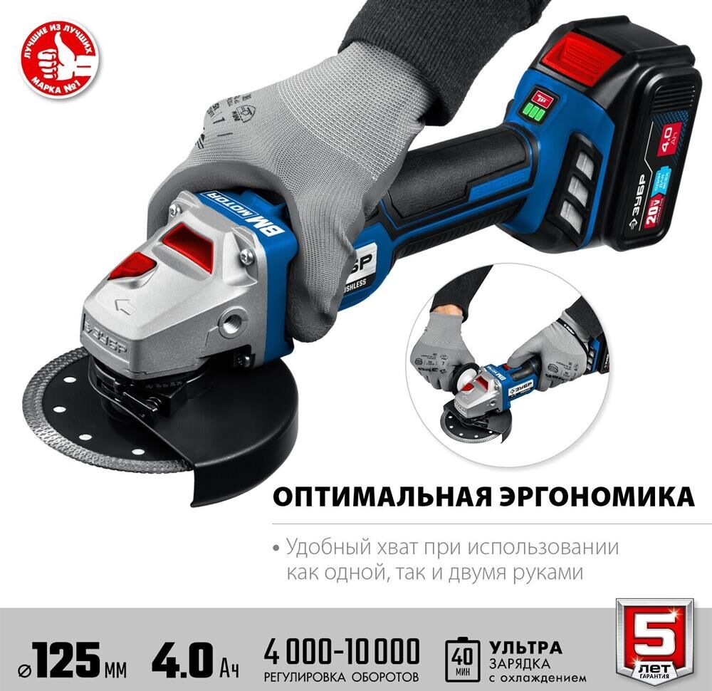 ЗУБР AB-125-42 20В бесщеточная УШМ, 2 АКБ (4Ач), в сумке, Профессионал.