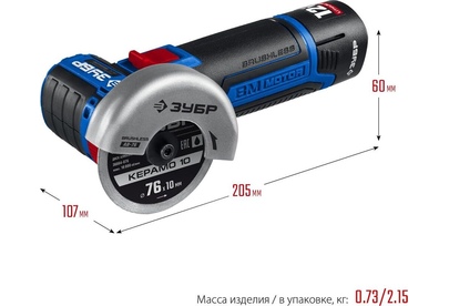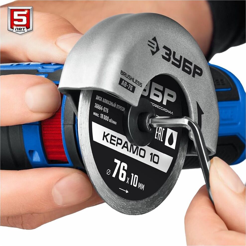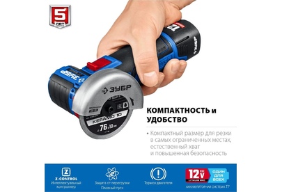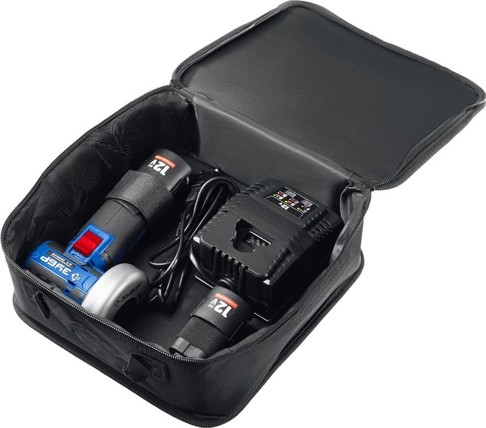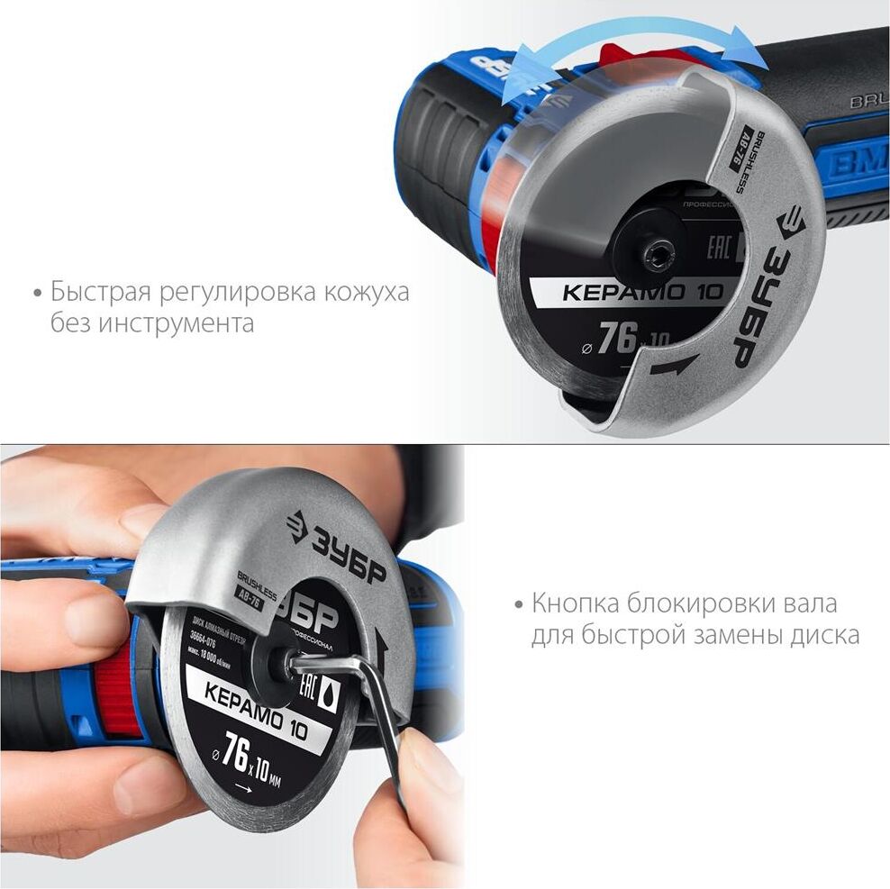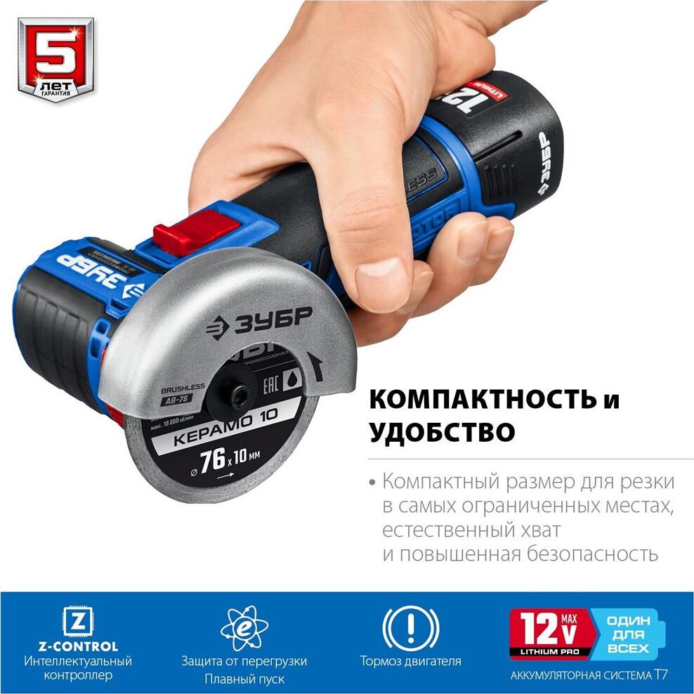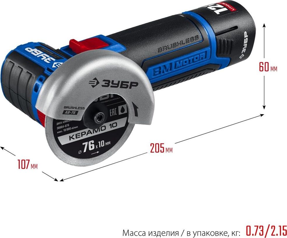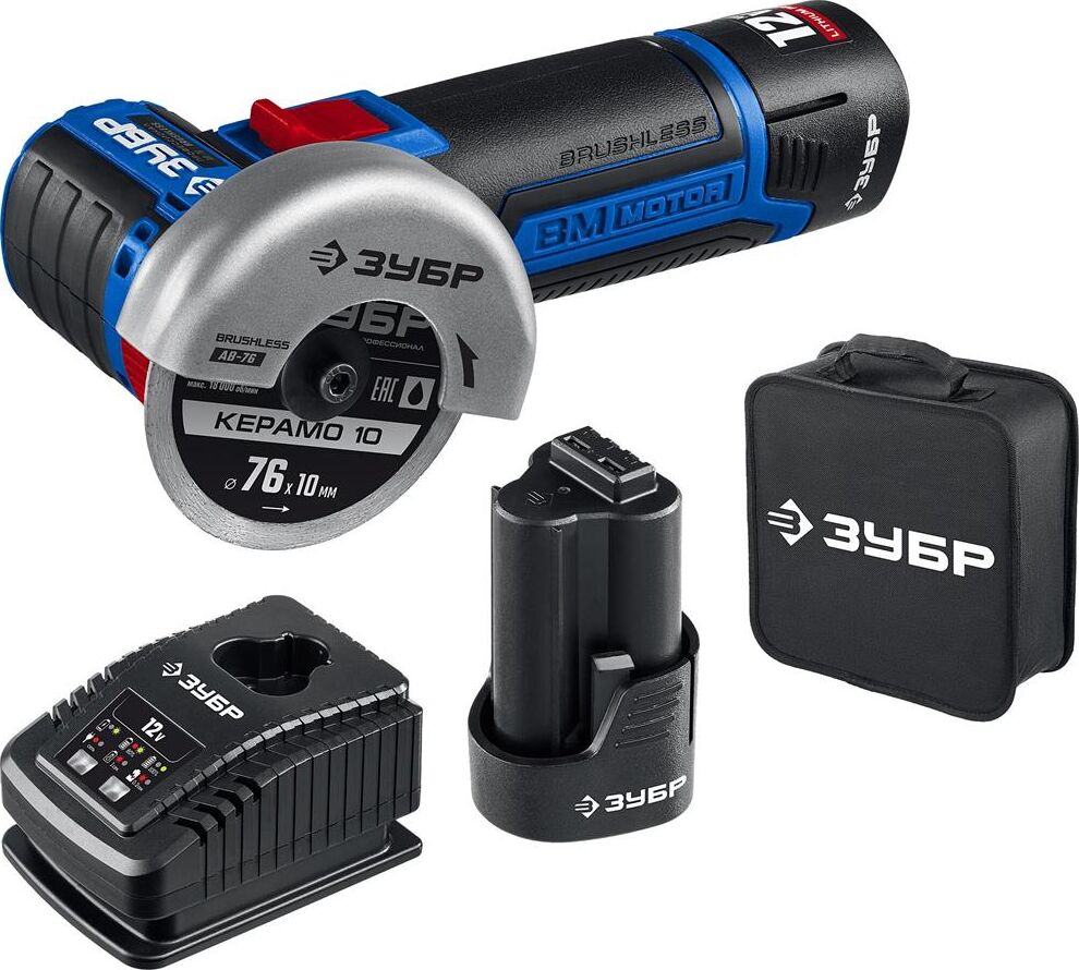 ЗУБР AB-76-22 12В бесщеточная УШМ, 2 АКБ (2Ач), в сумке, Профессионал