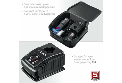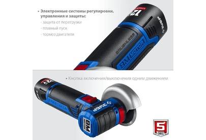 Напряжение изделия, В 12 Диаметр диска, мм 76-80 Посадочный диаметр, мм 10 Число оборотов, об/мин 20000 Резьба шпинделя М5 Тип аккумулятора Li-Ion Емкость аккумулятора, А·ч 2.0 Съемная батарея есть Плавный пуск есть Защита от перегрузки есть Тормоз вала есть Защита от повторного включения есть Защита при заклинивании диска есть Защита от непреднамеренного пуска есть Регулировка положения кожуха без инструмента есть Фиксация кнопки включения есть Тип двигателя BRUSHLESS, бес ще точ ный Количество аккумуляторов 2 Зарядное устройство есть Время заряда батареи, ч 1 Напряжение питания зарядного устройства, В/Гц 230/50 Габариты, см 28x28x11