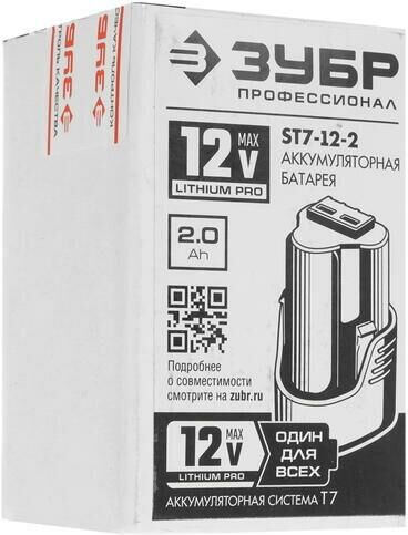 ЗУБР Батарея аккумуляторная Профессионал, 12В, 2Ач, Li-Ion [st7-12-2]