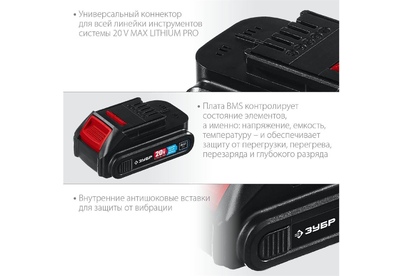 ЗУБР Батарея аккумуляторная Профессионал, 20В, 2Ач, Li-Ion [st7-20-2]