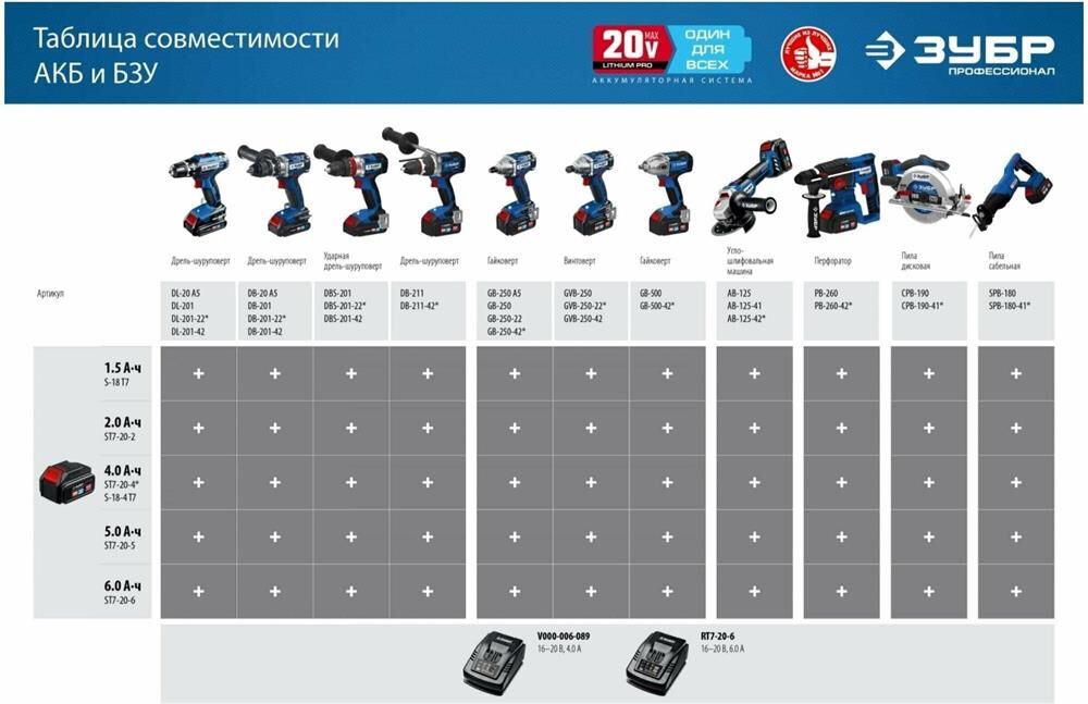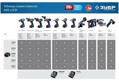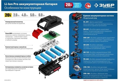 Напряжение: 20. Емкость: 2. Вес: 330. Тип аккумулятора: Li-Ion. Устройство аккумулятора: Слайдер. Назначение: для электроинструмента. Функция быстрой зарядки: ДА. Совместимость: для Зубр DL-20 A5, DB-20 A5, DL-201, DB-201, DB-211, DBS-201, GB-250, GVB-250, GB-500, AB-125. Циклов заряд/разряд: 500. Количество аккумуляторов в комплекте: 1. Габариты упаковки (ед) ДхШхВ: 0.12x0.08x0.06. Вес упаковки (ед): 0.2. Страна производства: Китай. Гарантия: 12 мес.. Назначение: для электроинструмента. Напряжение: 20 В. Вес: 330 грамм. Тип аккумулятора: Li-Ion. Емкость: 2 Ач. Устройство аккумулятора: Слайдер
