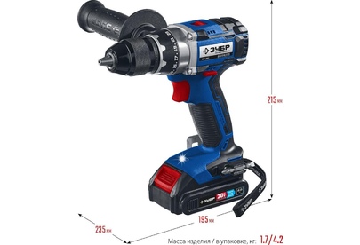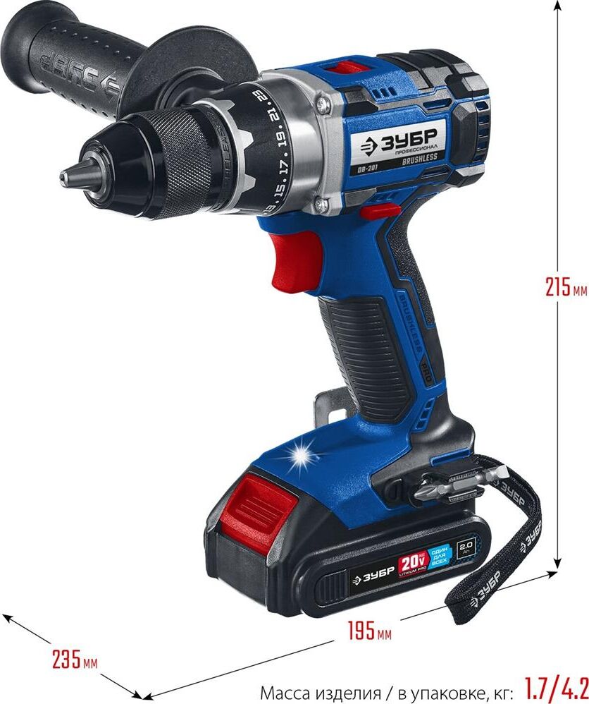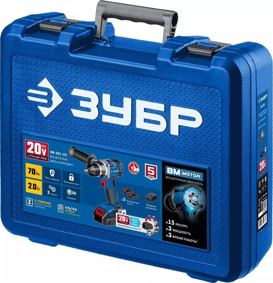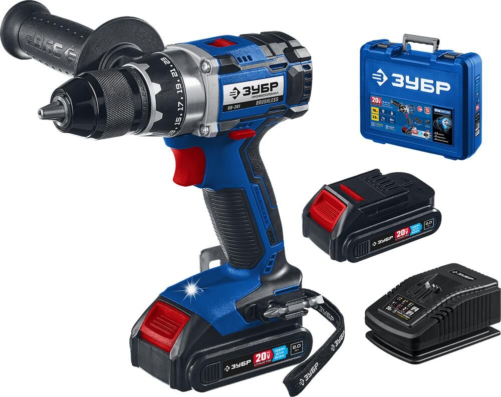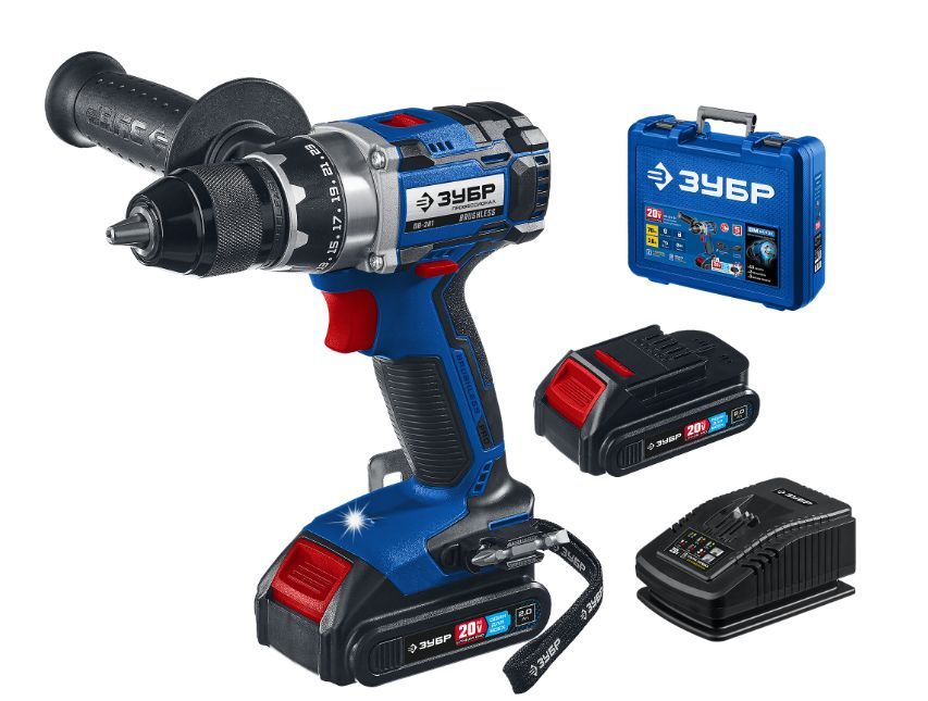 ЗУБР DB-201-22 20В бесщеточная дрель-шуруповерт, 2 АКБ (2Ач), в кейсе, Профессионал