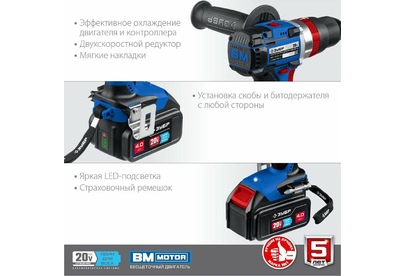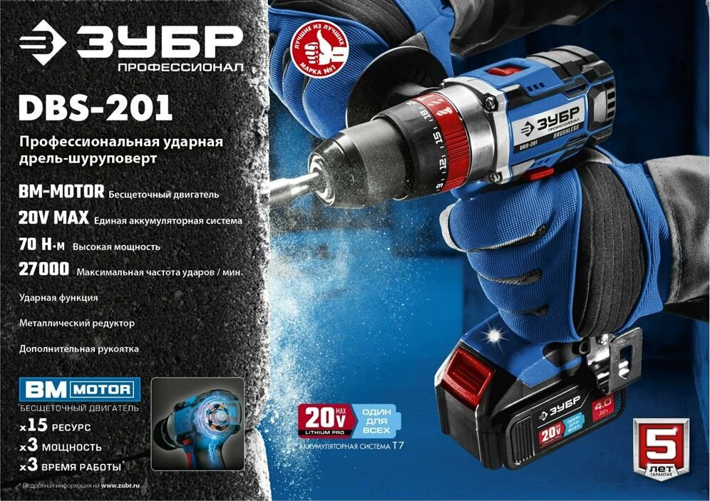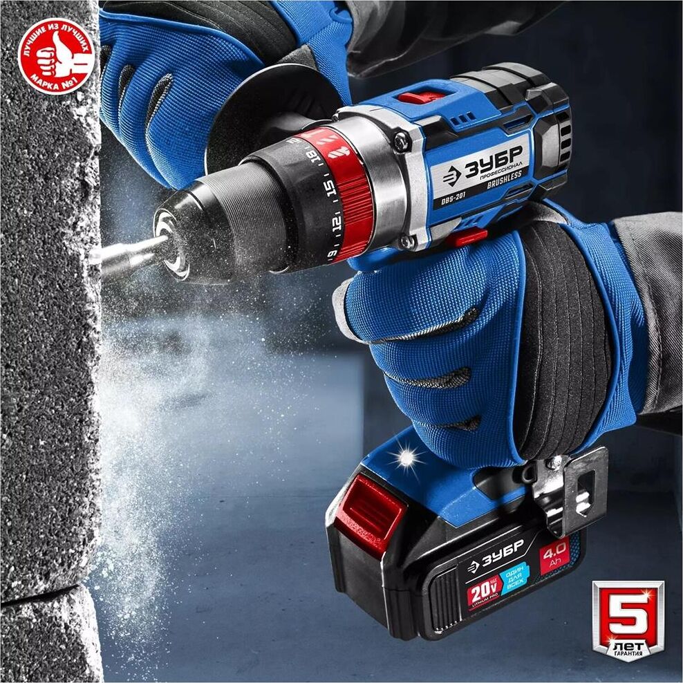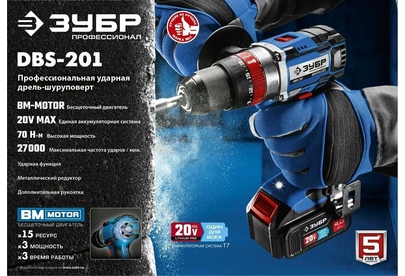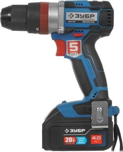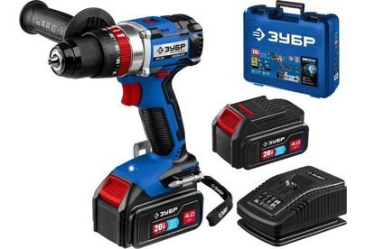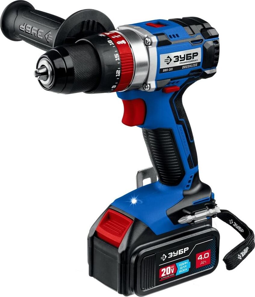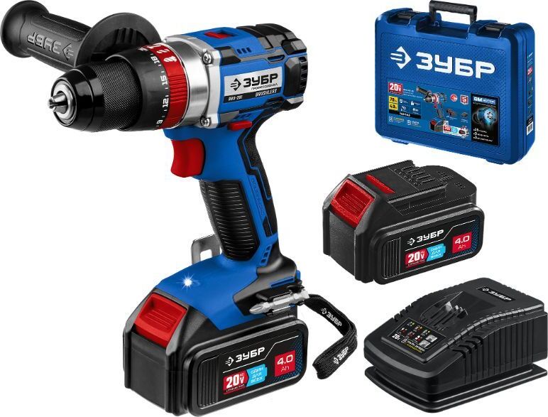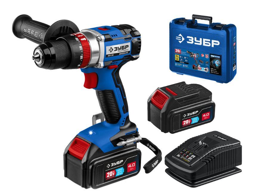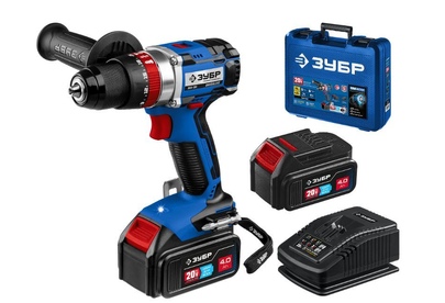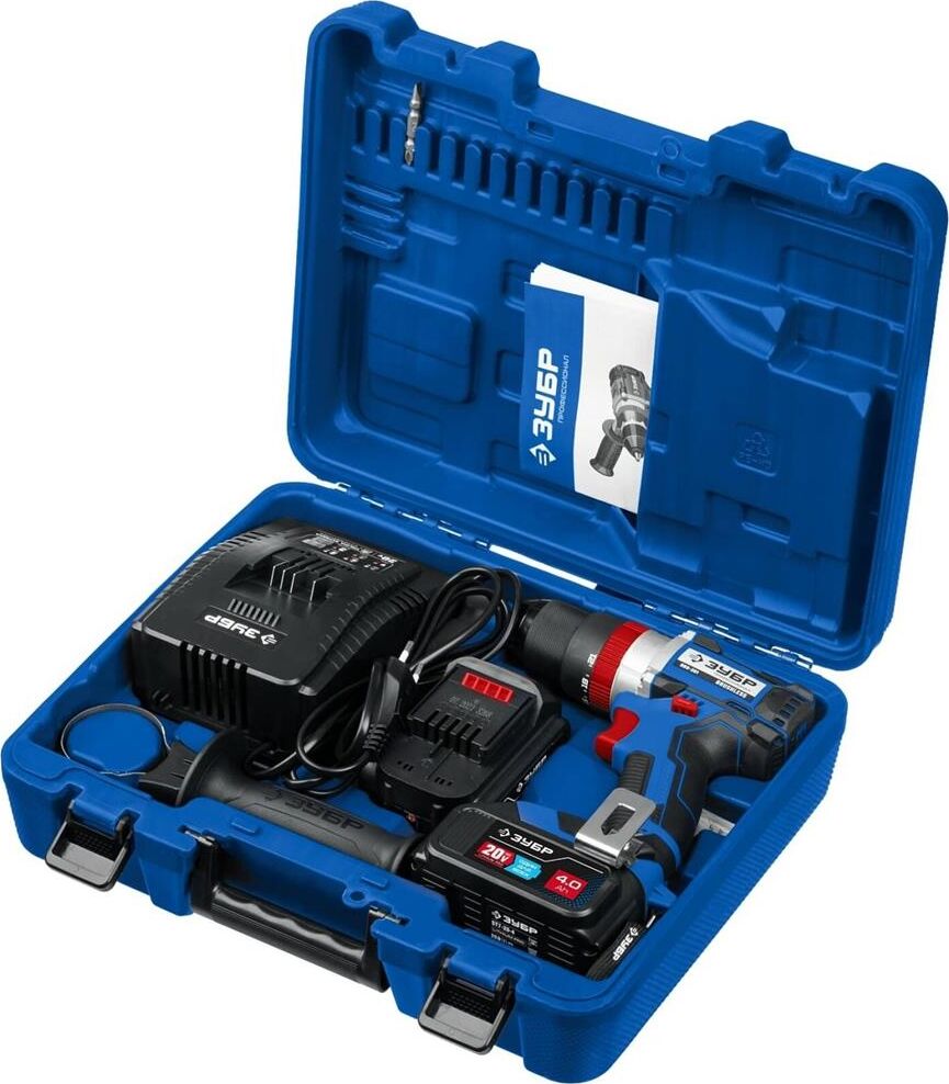 ЗУБР DBS-201-42 20В бесщеточная ударная дрель-шуруповерт, 2 АКБ (4Ач), в кейсе, Профессионал