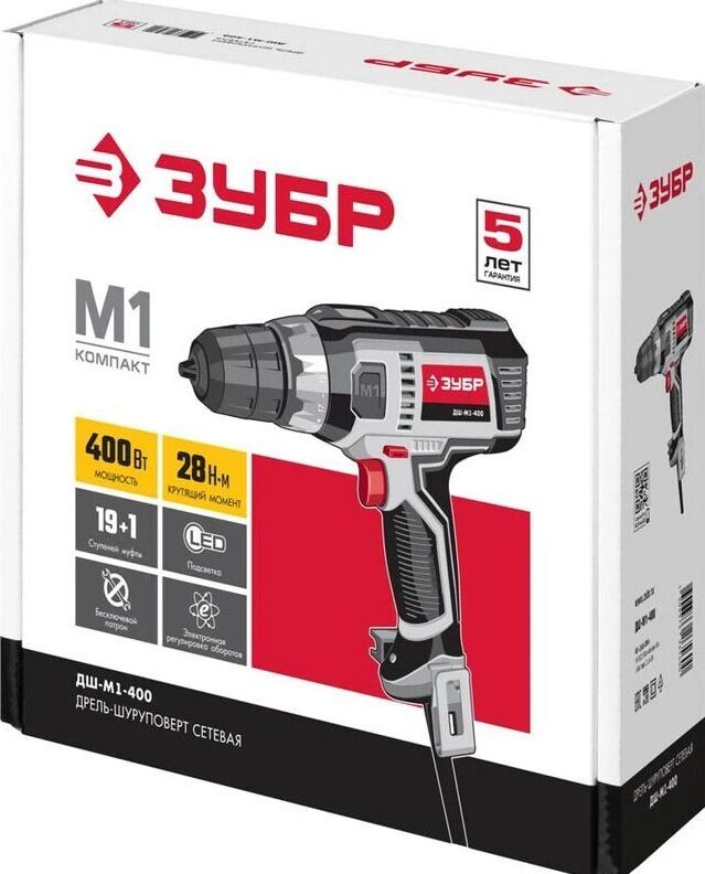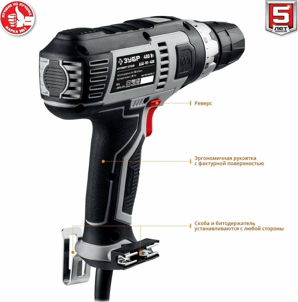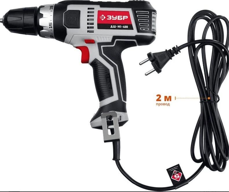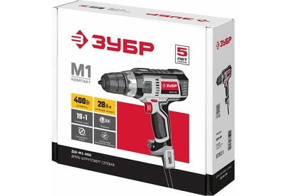 ЗУБР ДШ-М1-400 дрель-шуруповерт сетевая, 400 Вт, 0-750 об/мин