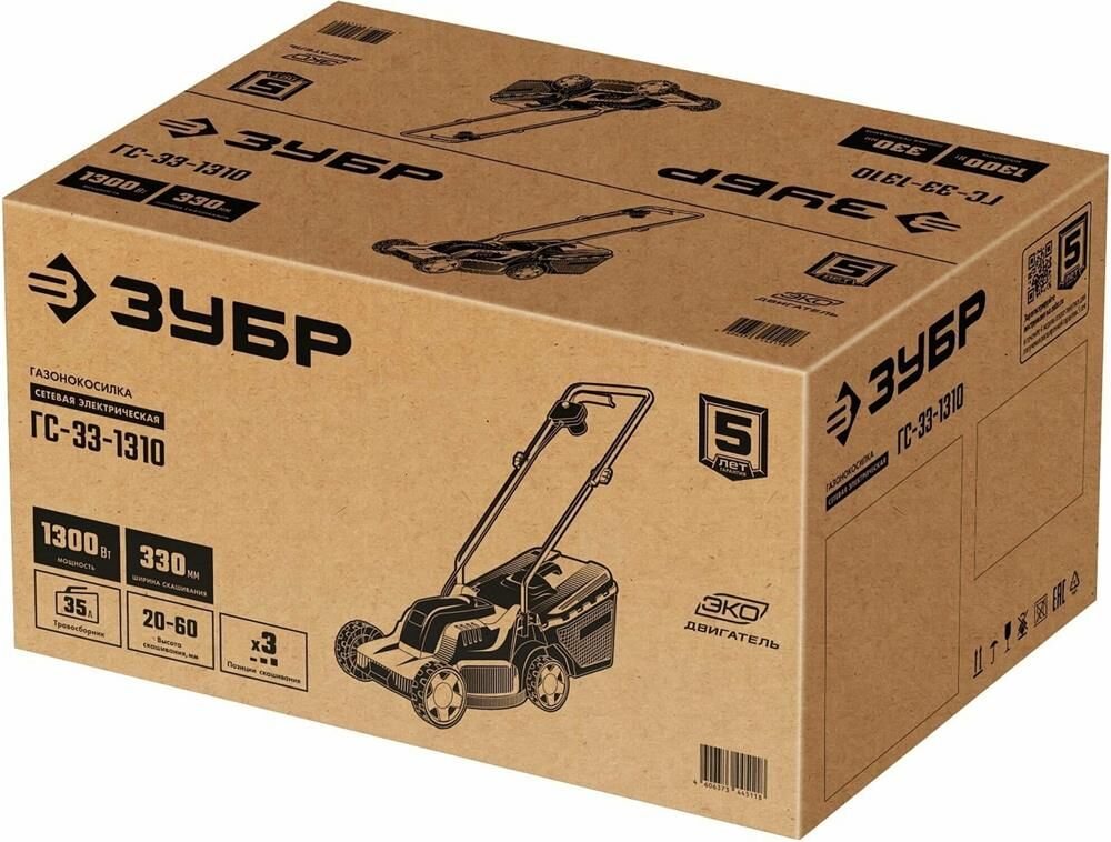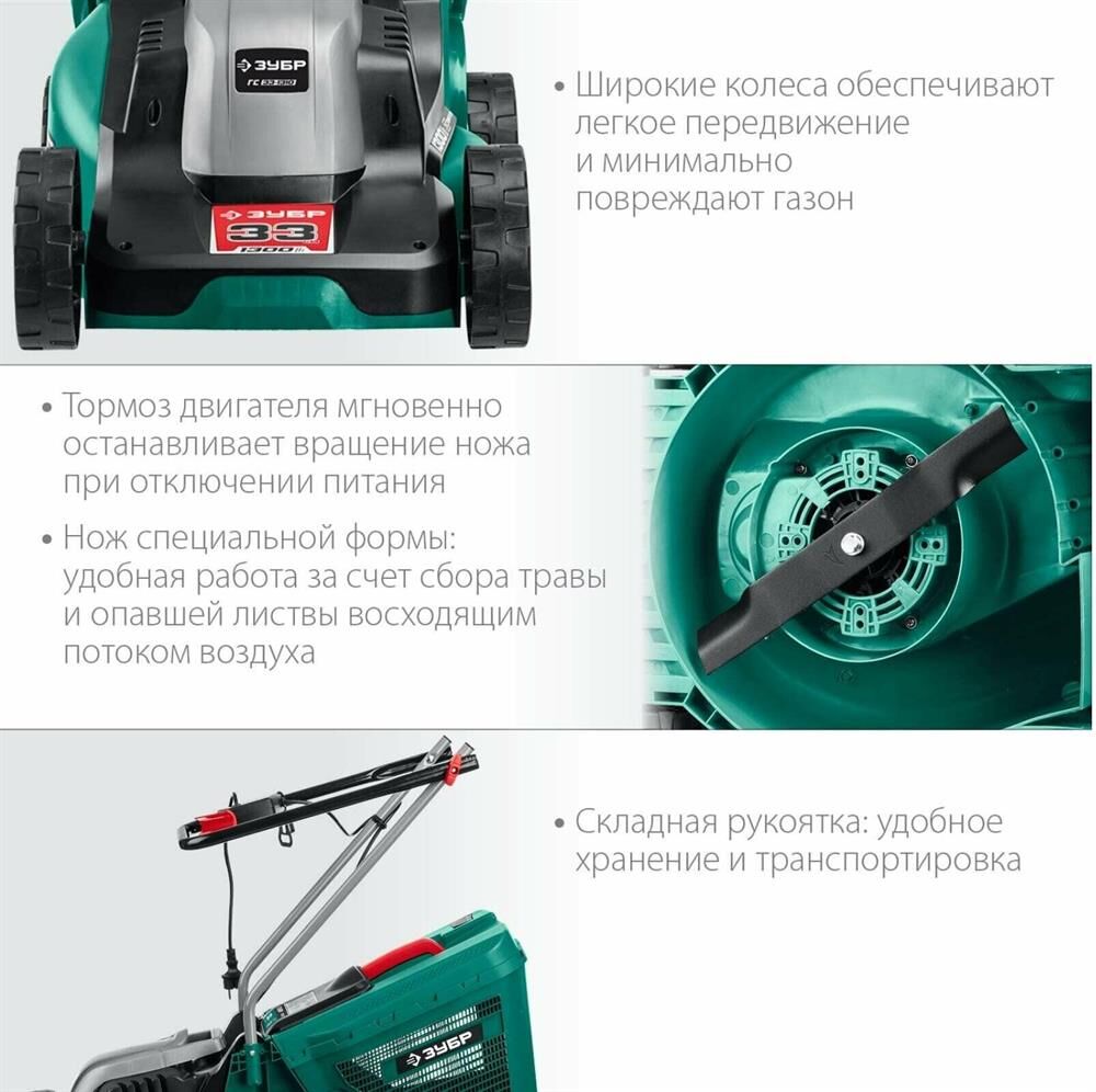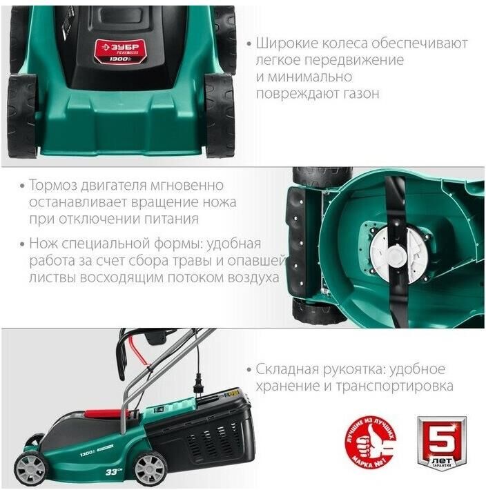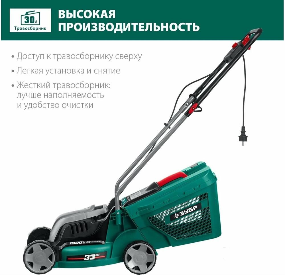 ЗУБР Газонокосилка электрическая ГС-33-1310, 33см, несамоходная