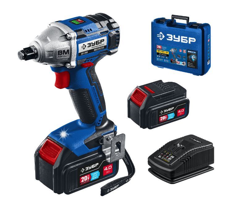 ЗУБР GB-250-42 20В бесщеточный гайковерт, 2 АКБ (4Ач), в кейсе, Профессионал