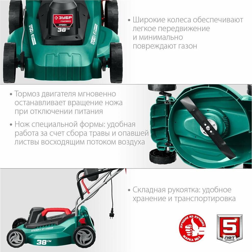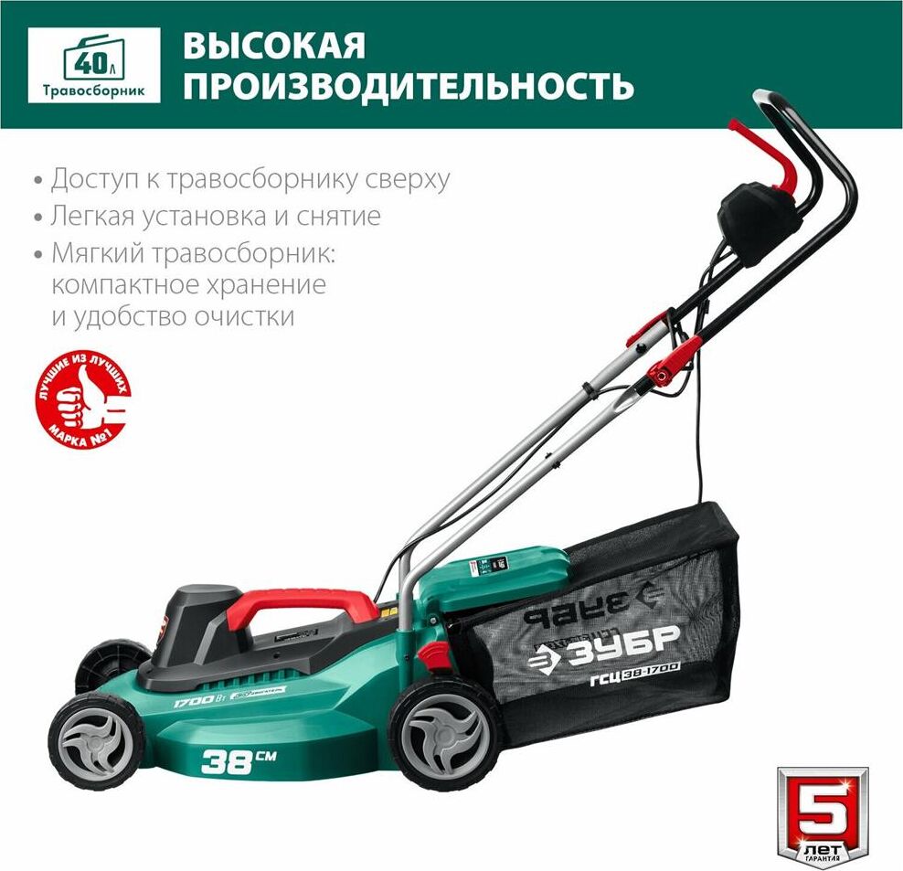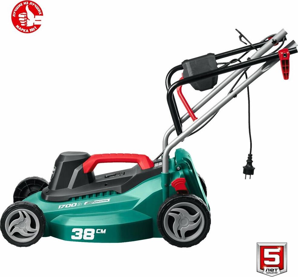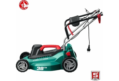 Мощность двигатея, Вт 1700. Частота вращения шпиндея, об/мин 3300. Ширина скашивания, см 38. Мин. высота скашивания, мм 25. Макс. высота скашивания, мм 75. Количество ступеней регулировки 5. Регулировка высоты кошения центральная. Травосборник есть. Объем травосборника, л 40. Тип травосборника мягкий. Мульчирование нет. Выброс травы назад. Самостоятельное движение нет. Материал корпуса пластик. Тип рукоятки складная. Напряжение, В/Гц 230 / 50. Габариты, см 68x44x28. Масса изделия, кг 10.
