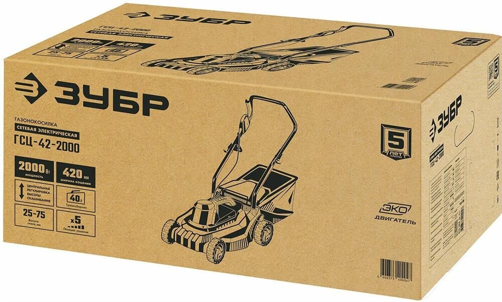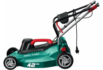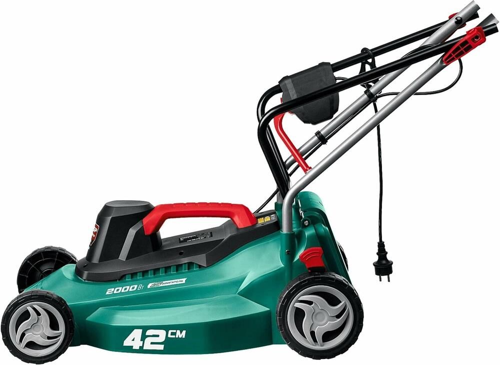 Мощность двигатея, Вт 2000. Частота вращения шпиндея, об/мин 3200. Ширина скашивания, см 42. Мин. высота скашивания, мм 25. Макс. высота скашивания, мм 75. Количество ступеней регулировки 5. Регулировка высоты кошения центральная. Травосборник есть. Объем травосборника, л 40. Тип травосборника мягкий. Мульчирование нет. Выброс травы назад. Самостоятельное движение нет. Материал корпуса пластик. Тип рукоятки складная. Напряжение, В/Гц 230 / 50. Габариты, см 72x48x29. Масса изделия, кг 11.