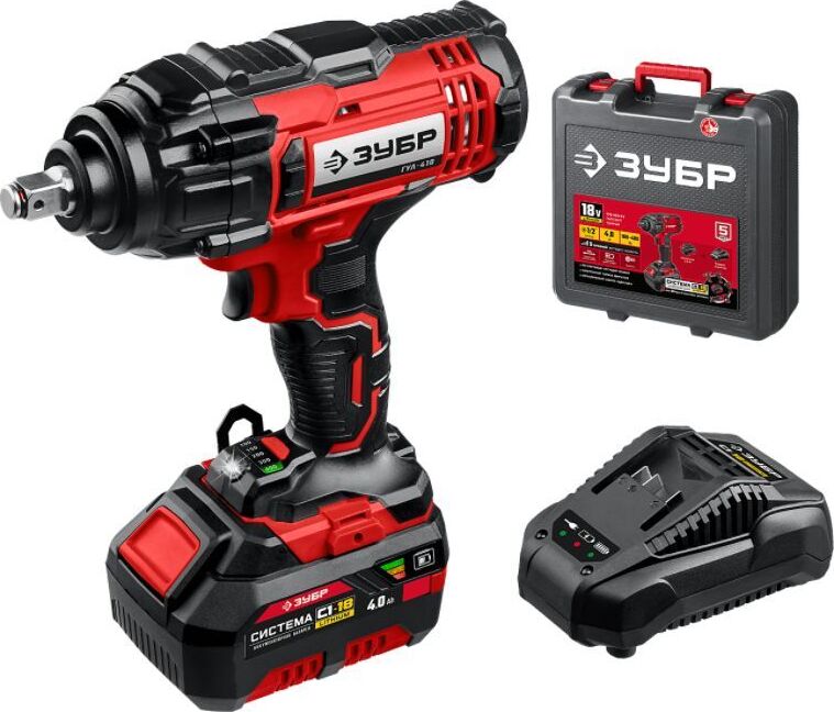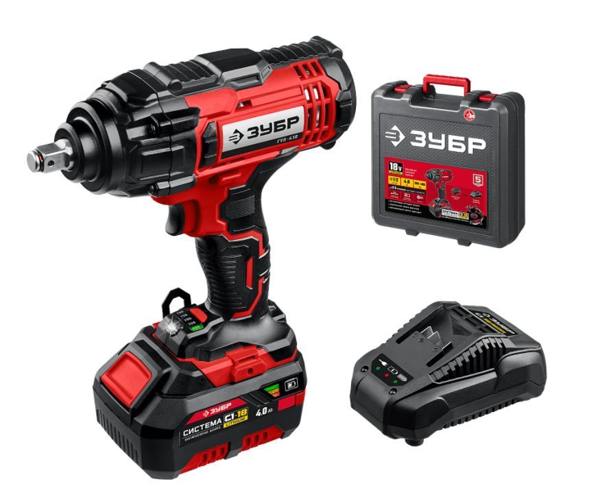 ЗУБР ГУЛ-410-41 18В, 1 АКБ (4Ач), в кейсе, гайковерт ударный.
