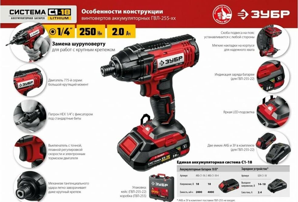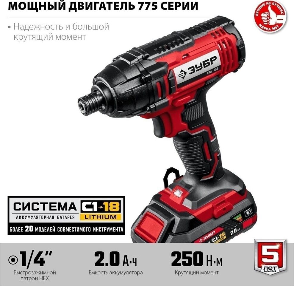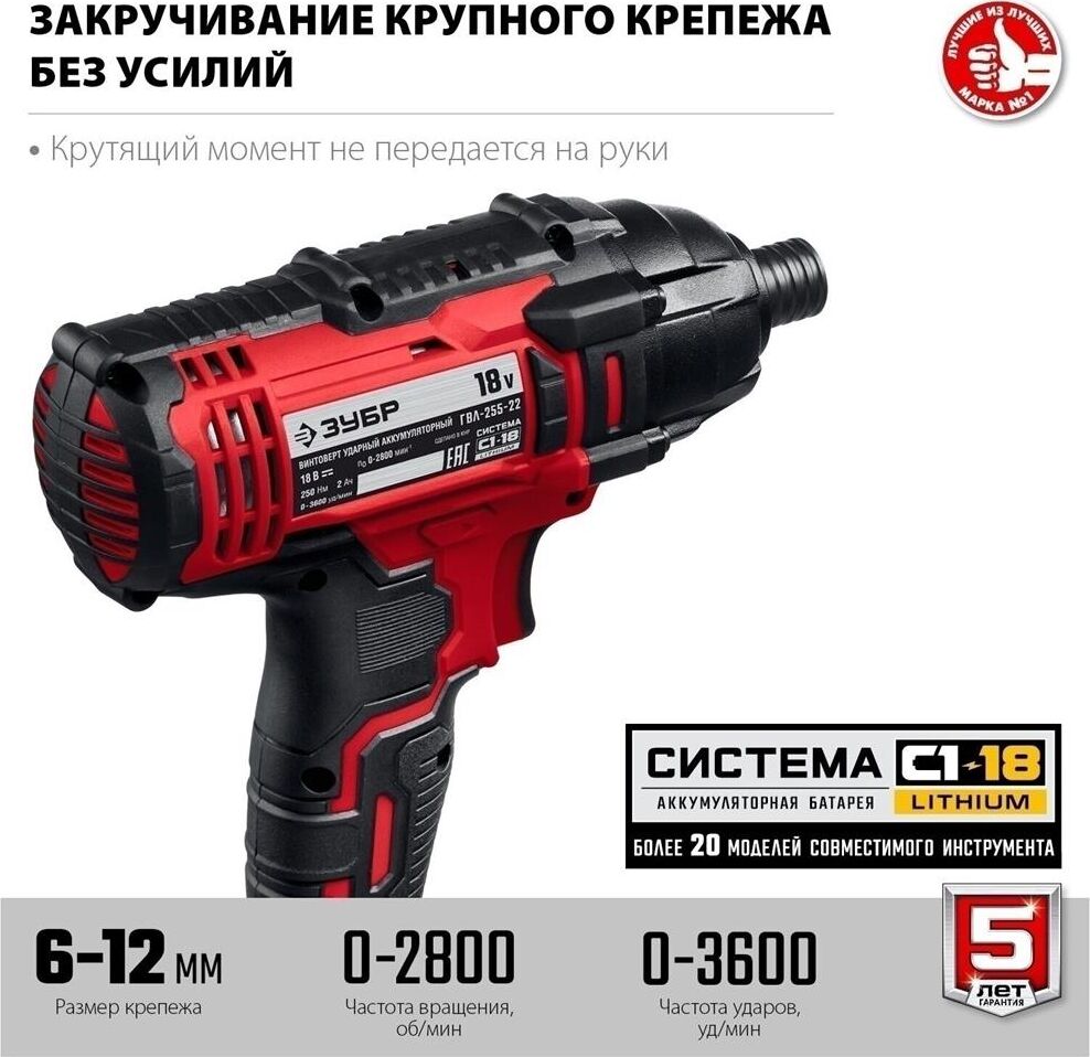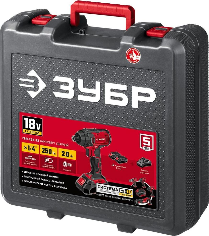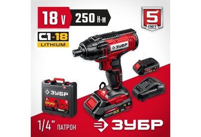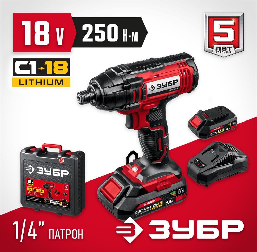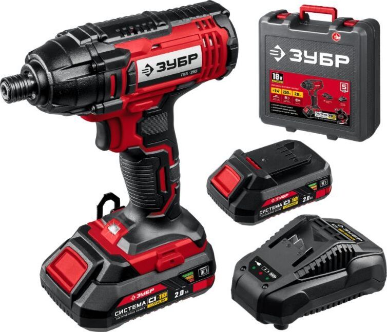 ЗУБР ГВЛ-255-22 18В, 2 АКБ (2Ач), в кейсе, винтоверт ударный.