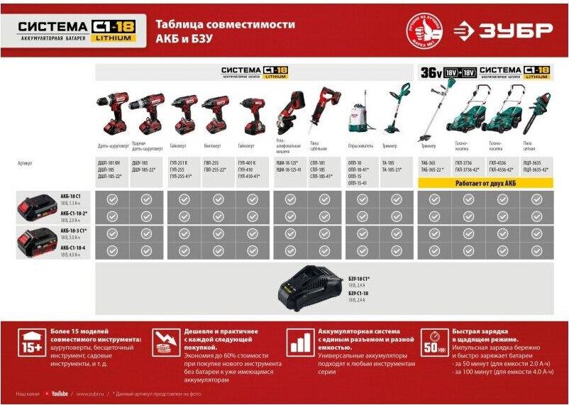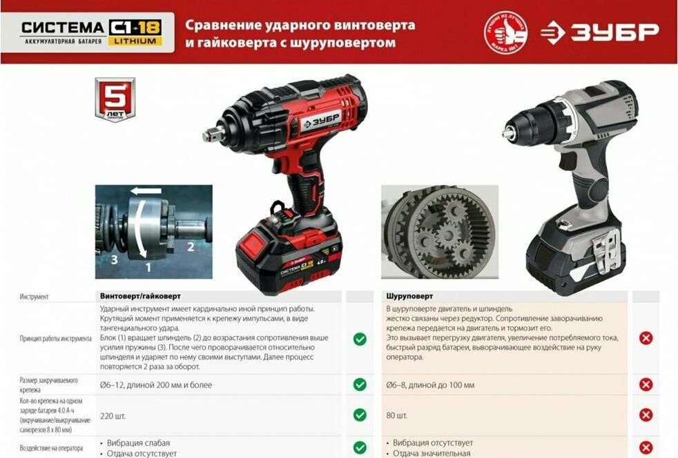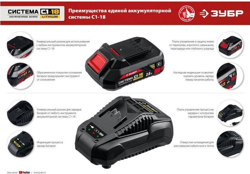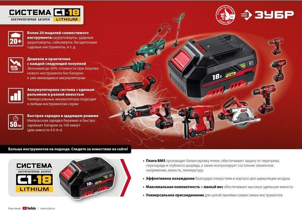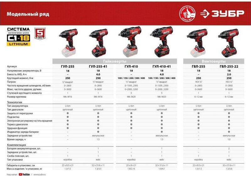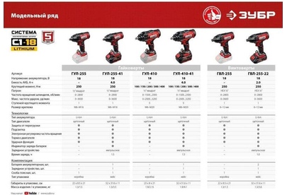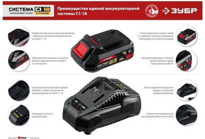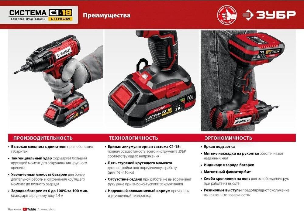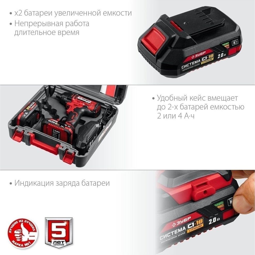 ЗУБР ГВЛ-255-22 18В, 2 АКБ (2Ач), в кейсе, винтоверт ударный.