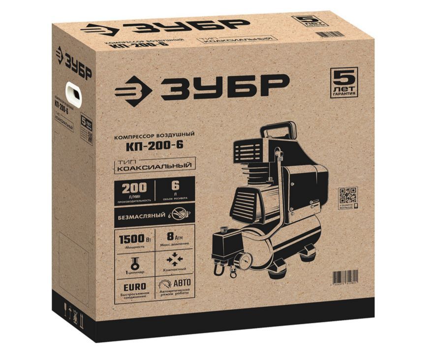 ЗУБР КП-200-6 Компрессор воздушный безмасляный