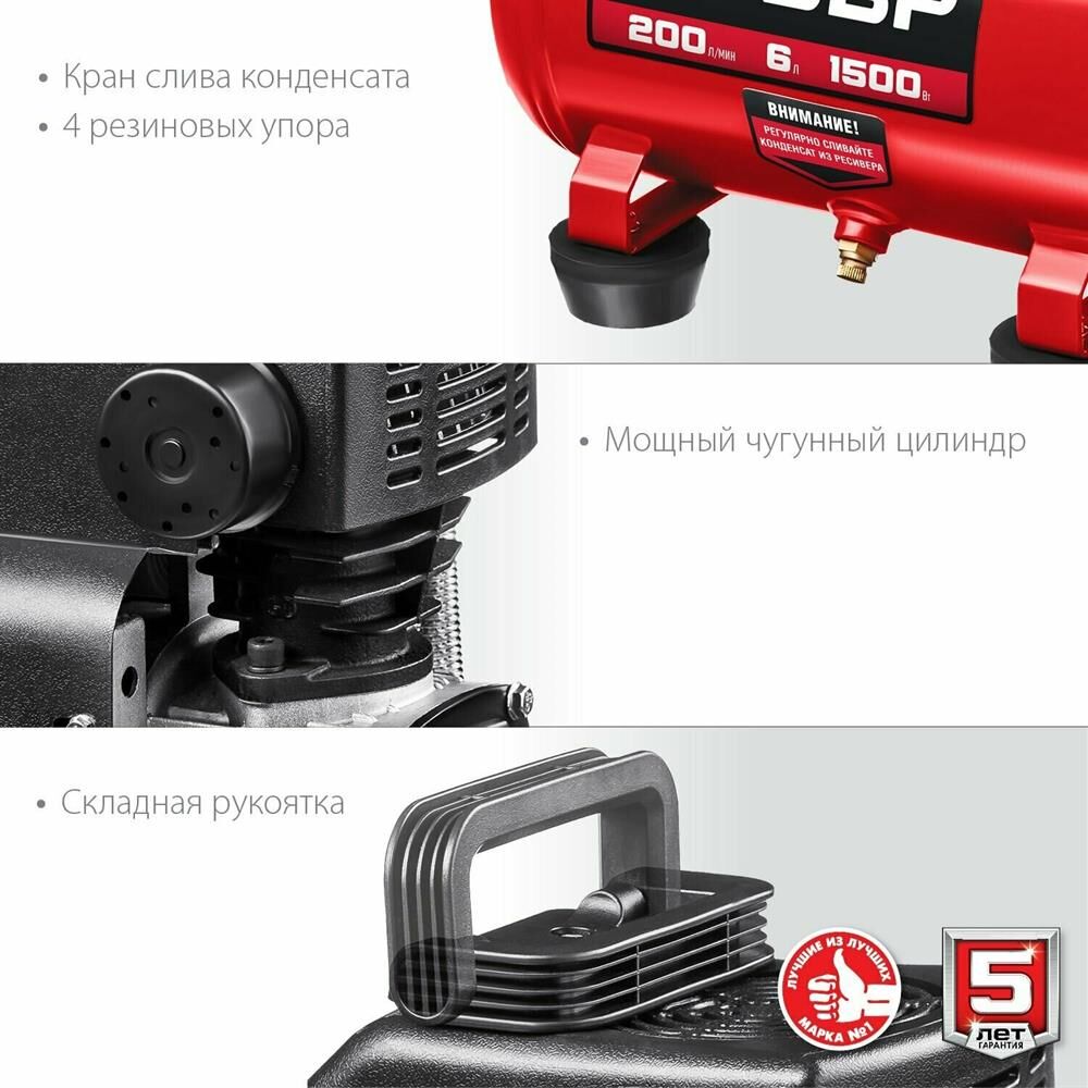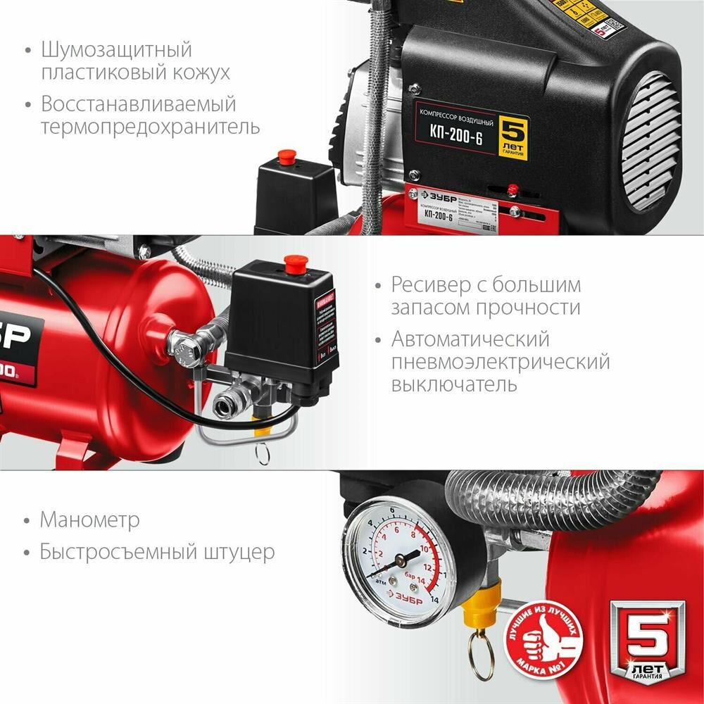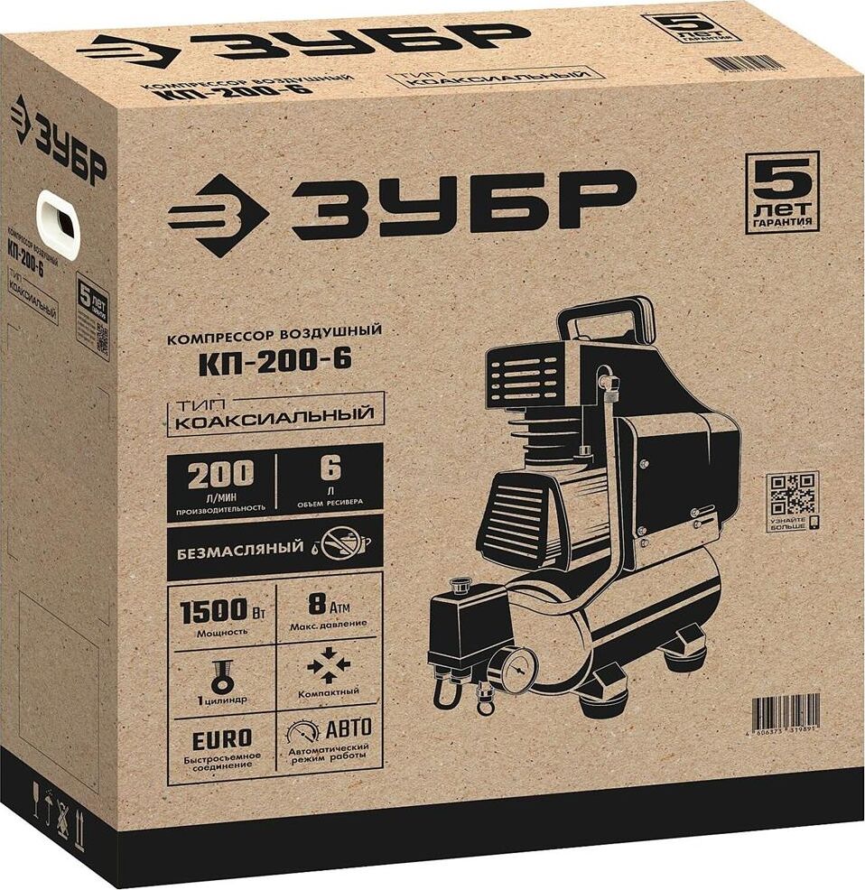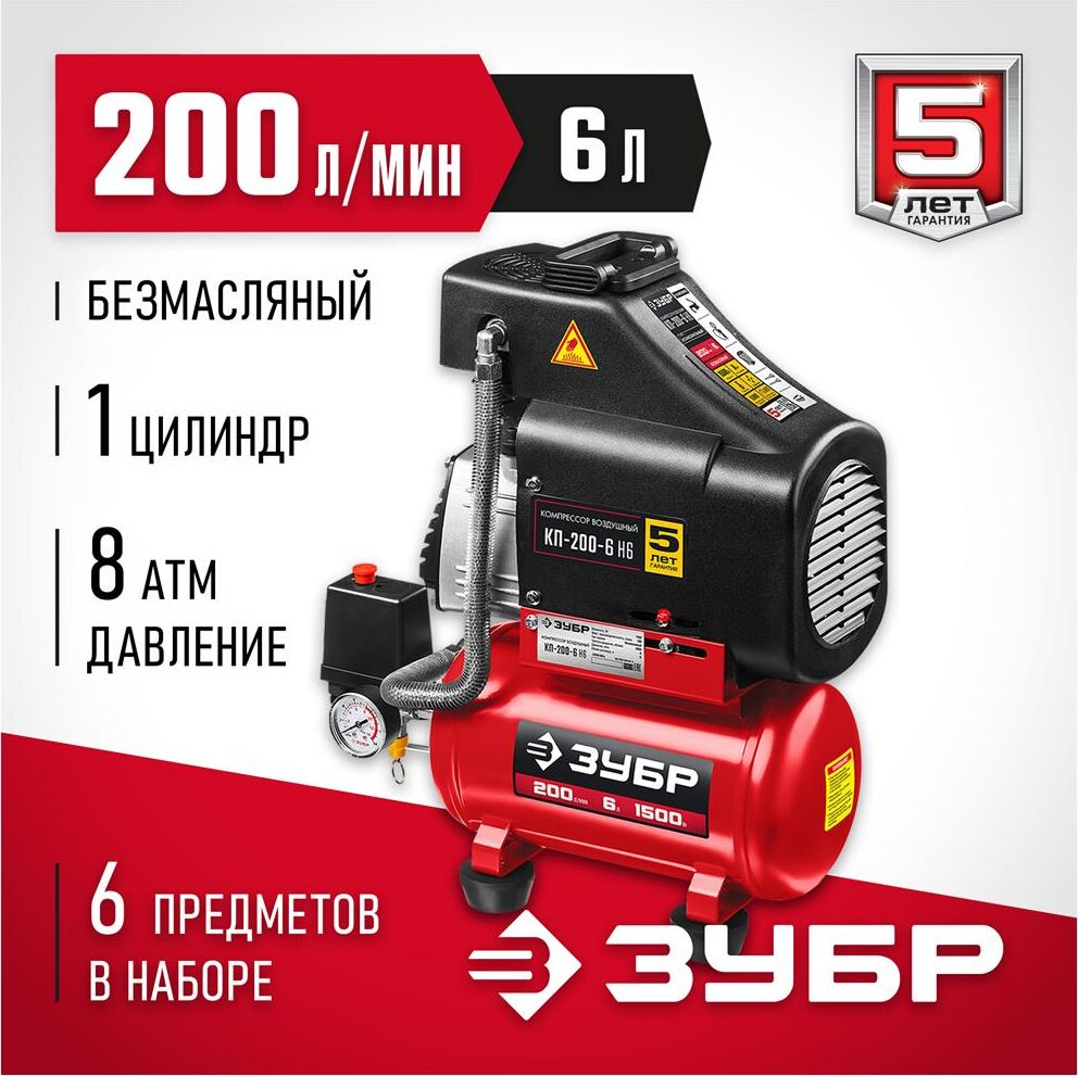 ЗУБР КП-200-6 Компрессор воздушный безмасляный