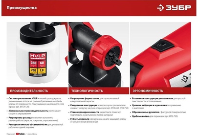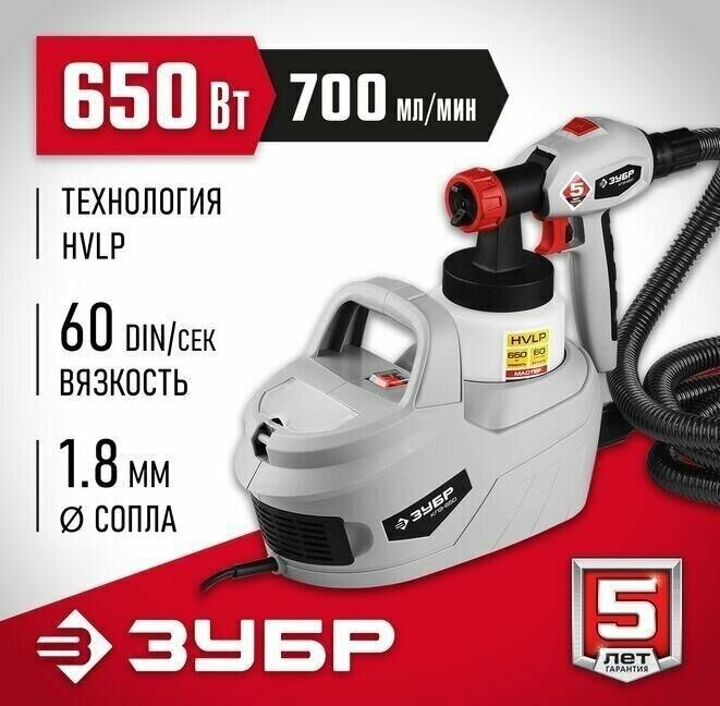 ЗУБР КПЭ-650 Краскопульт электрический, компрессорный, 650 Вт