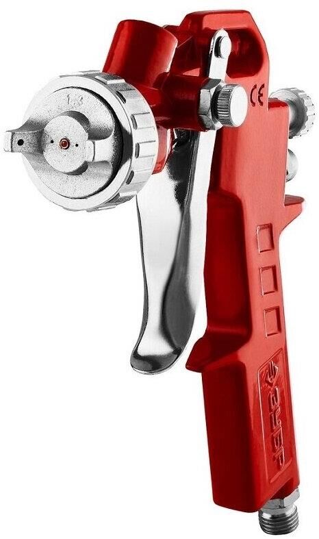 Комплектация: Краскопульт. Бачок. Переходник. Инструмент для обслуживания краскопульта.. Особенности: Система распыления High Pressure (HP): высокое входное давление и низкий расход воздуха позволяет использовать краскопульт с бытовыми компрессорами. Получается однородный факел идеальной формы. Регулировки формы факела и хода курка делает.. Вес нетто: 0.58. Расход воздуха: 225. Сопло: 1.3. Объем бака: 0.6. Материал бака: пластик. Посадочный размер (для коннектора): 1/4. Расположение бака: верхнее. Технология распыления: HP. Коннектор: рапид. Габариты упаковки (ед) ДхШхВ: 0.13x0.13x0.23. Вес упаковки (ед): 0.6. Гарантия: 6 мес.. Давление: 3 - 5 Бар. Расход воздуха: 225 л/мин. Вес нетто: 0.58 кг. Объем бака: 0.6 л. Давление: 3 - 5 Бар. Сопло: 1.3 мм