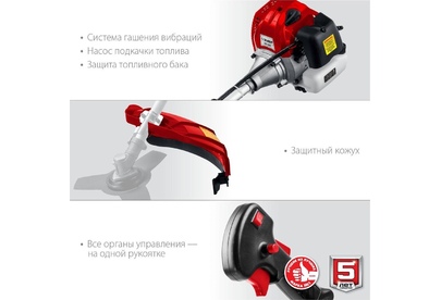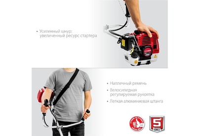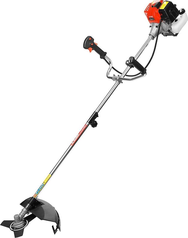 Мощность, кВт 1. Объем двигателя, см3-33. Максимальная частота вращения, об/мин 9000. Ширина скашивания леской/ножом, см 47/25.5. Емкость топливного бака, мл 950. Тип режущего элемента леска/нож. Диаметр лески, мм 2. Тип катушки полуавтоматическая. Тип рукоятки велосипедная. Тип штанги неразъемная. Тип приводного вала жесткий. Плечевой ремень. Антивибрационная система . Праймер . Масса изделия, кг 6.6. Масса в упаковке, кг 8.3. Габариты, см 103x29x31.