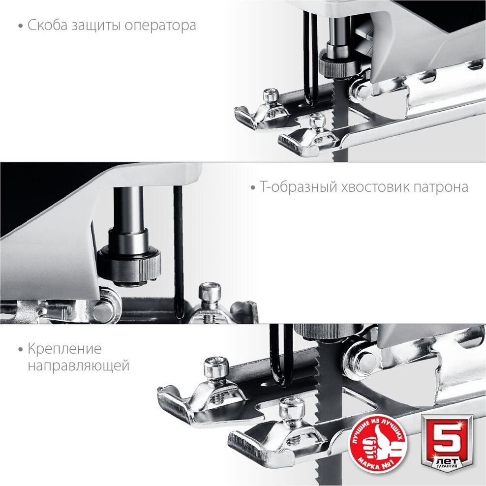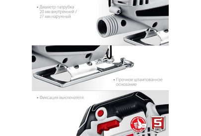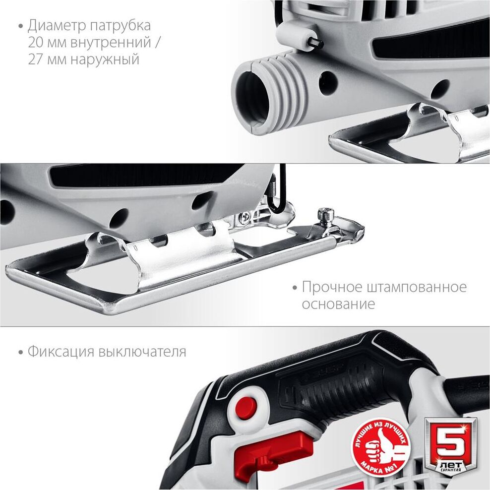 Мощность, Вт 400 Частота ходов пилки, ход/мин 0-3000 Ход пилки, мм 18 Макс. толщина пропила (дерево), мм 55 Макс. толщина пропила (металл), мм 6 Макс. толщина пропила (цветной металл), мм 10 Тип патрона пилкодержателя Т-образный Быстрозажимной патрон Электронная регулировка оборотов Поддержание постоянных оборотов под нагрузкой Возможность подключения пылесоса Диаметр патрубка (внутренний/наружный), мм 22/27 Защитный экран Форма рукоятки скобовидная Длина кабеля, м 2