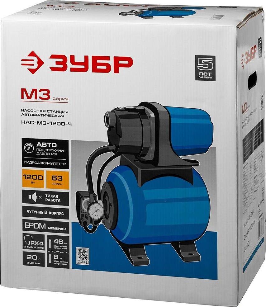 ЗУБР М3 НАС-М3-1200-Ч Станция насосная 1200 Вт, 63 л/мин