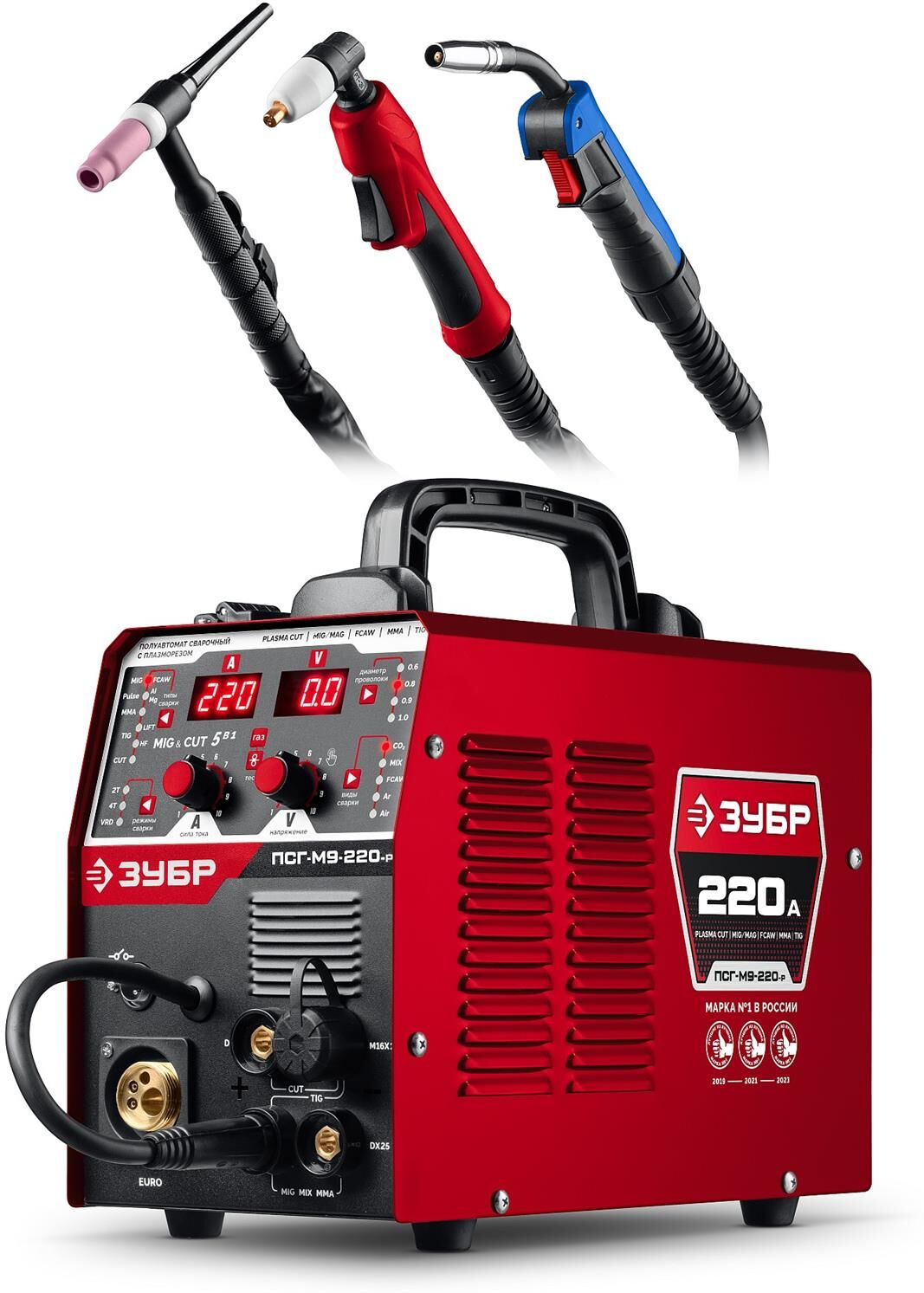 ЗУБР MIG & CUT 5-в-1, MIG / MAG, PLASMA CUT, FCAW, MMA, TIG, 220 А, полуавтомат сварочный, с газом /