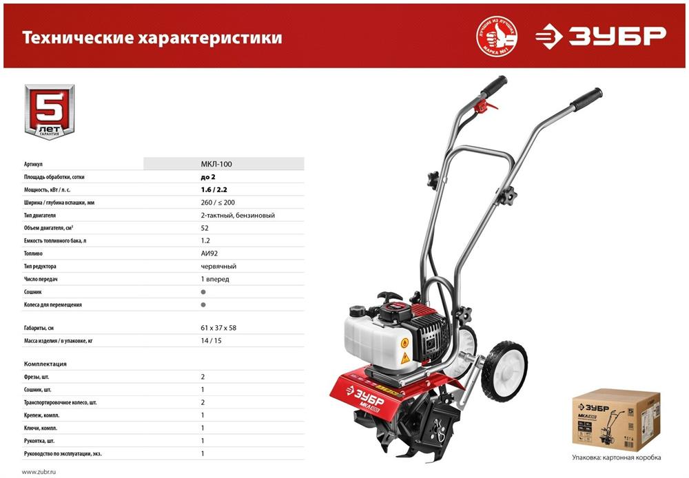 ЗУБР МКЛ-100 Культиватор бензиновый