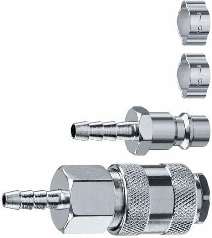Назначение для пневмоинструмента. Посадочный размер (для коннектора) быстросъёмный EURO ". Комплектация Набор (штуцер "елочка" 8 мм - рапид муфта) + (рапид штуцер-штуцер "елочка" 8 мм) + (обжимные хомуты 2 шт.). Цвет серый.