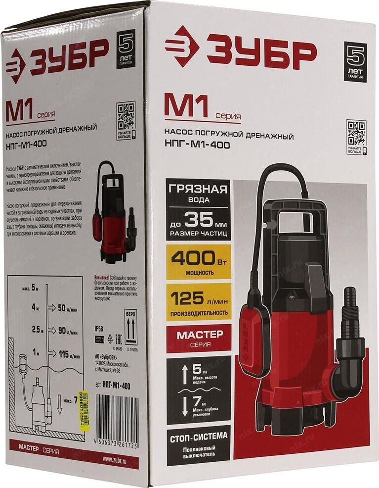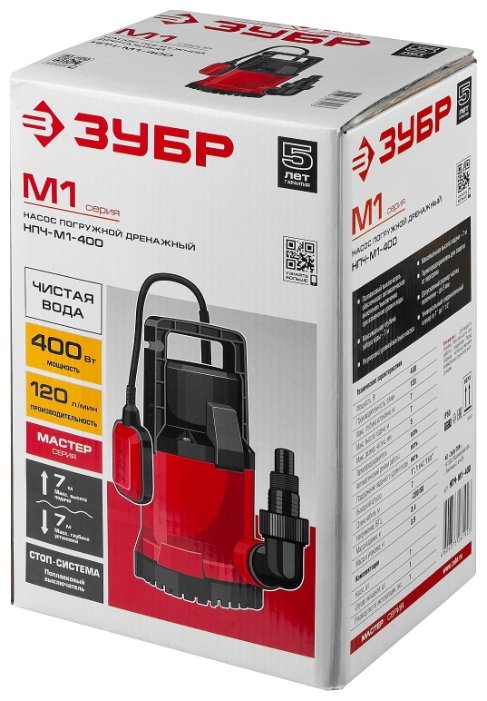 ЗУБР НПЧ-М1-400 Насос погружной дренажный для чистой воды 400 Вт, 120 л/мин