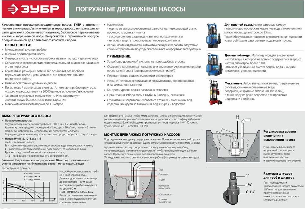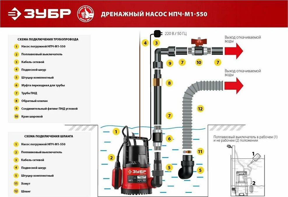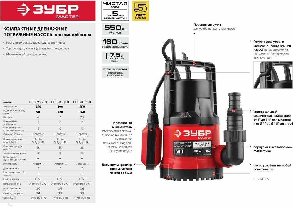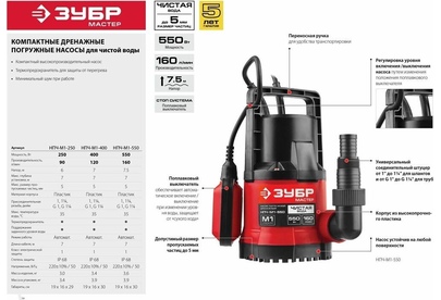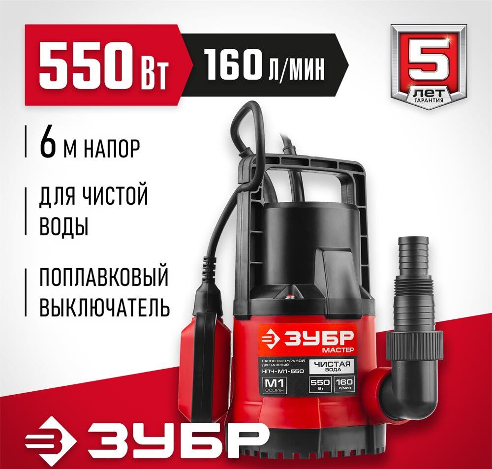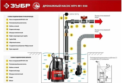 ЗУБР НПЧ-М1-550 дренажный насос с минимальным уровнем откачки