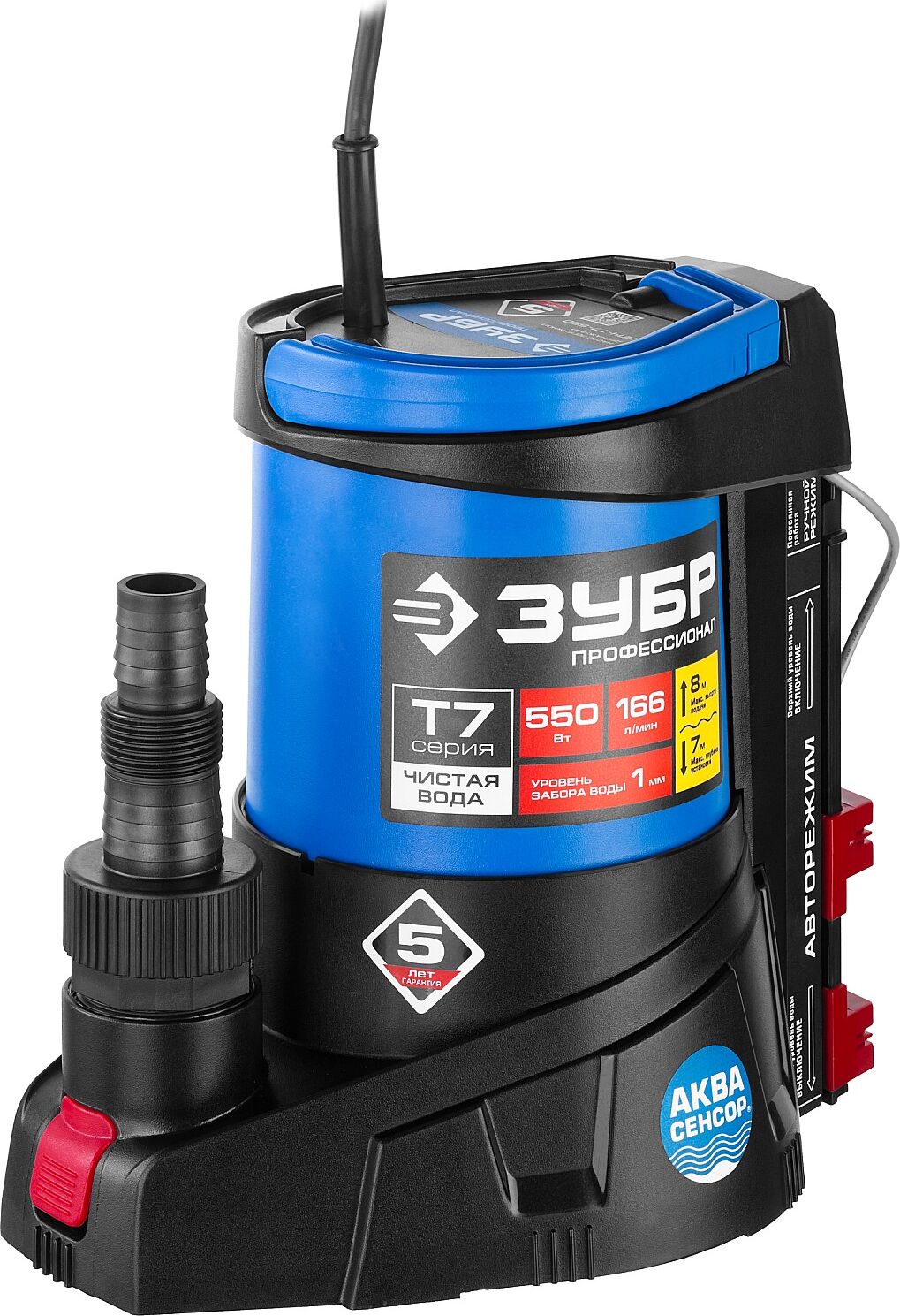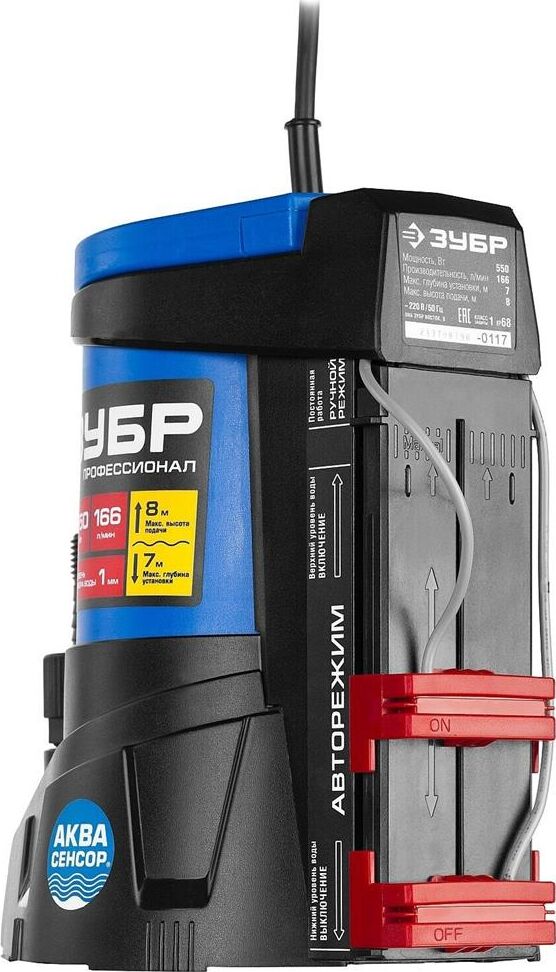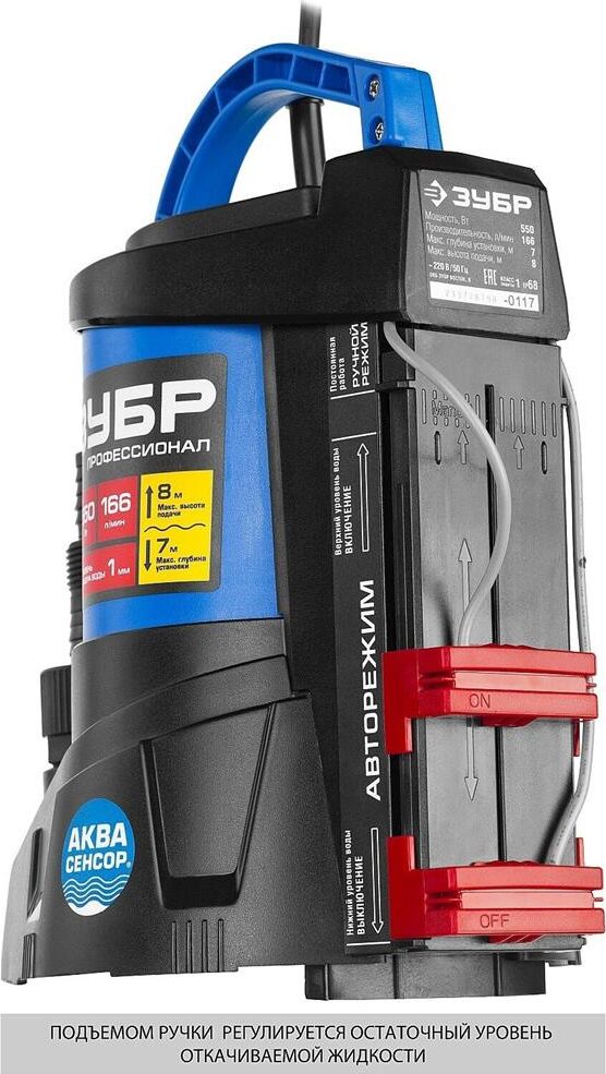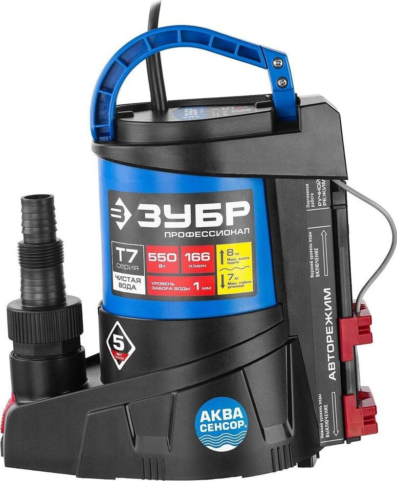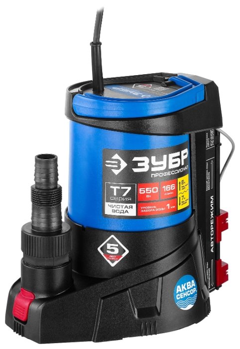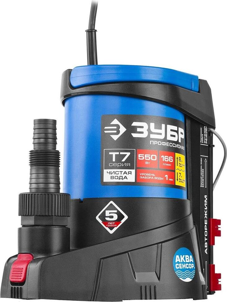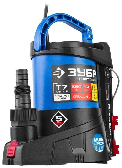 ЗУБР НПЧ-Т7-550 Насос погружной дренажный для чистой воды 550 Вт, мин. уровень забора воды 1 мм