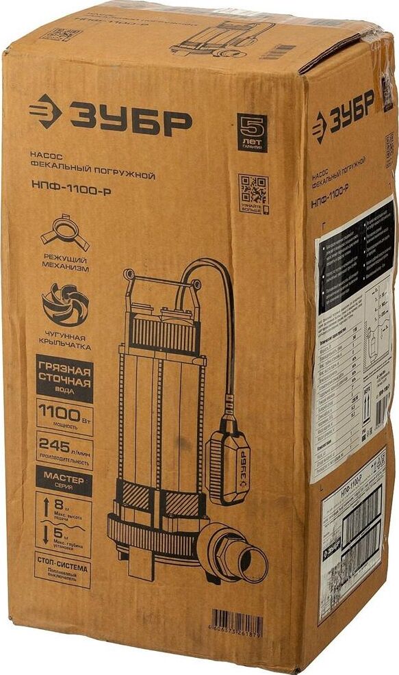 ЗУБР НПФ-1100-Р Насос фекальный погружной для загрязненной воды 1100 Вт, 245 л/мин