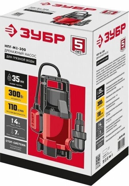 ЗУБР НПГ-М1-300 Дренажный насос для грязной воды 300 Вт
