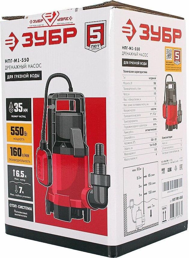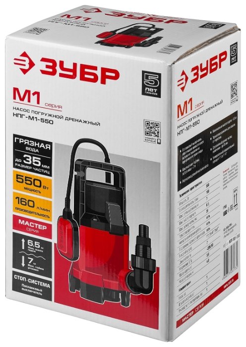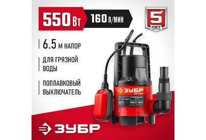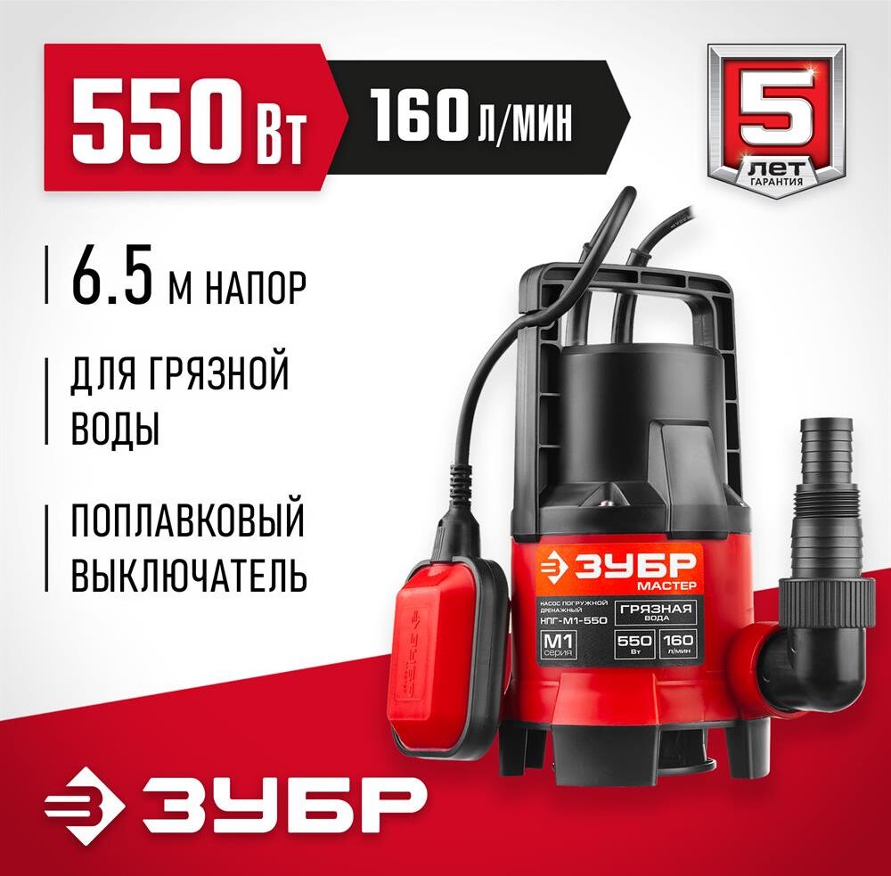ЗУБР НПГ-М1-550 Насос погружной дренажный для загрязненной воды 550 Вт, 160 л/мин