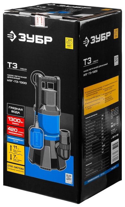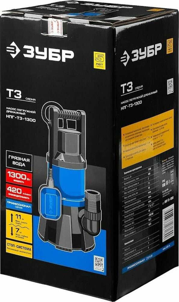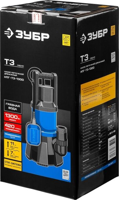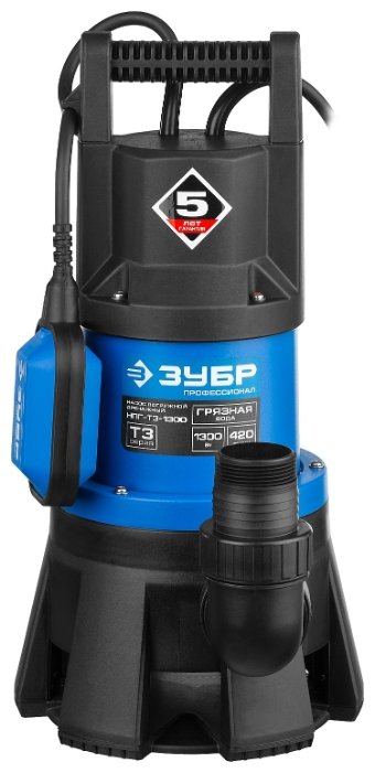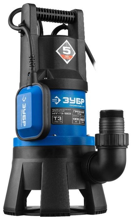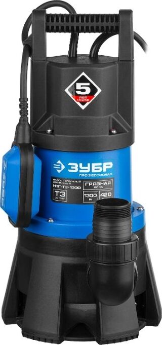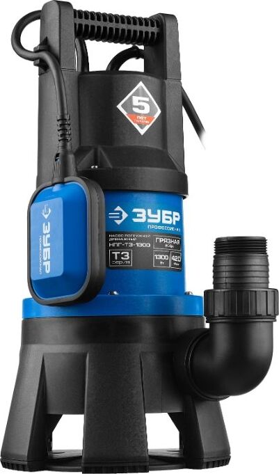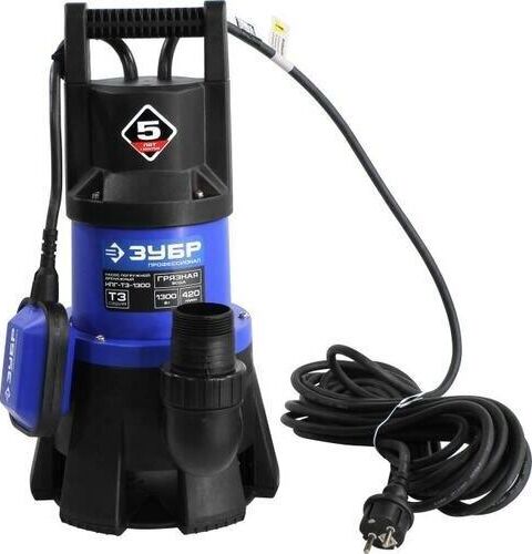 ЗУБР НПГ-Т3-1300 Насос погружной дренажный для грязной воды 1300 Вт, 420 л/мин