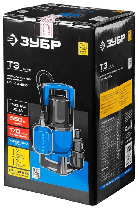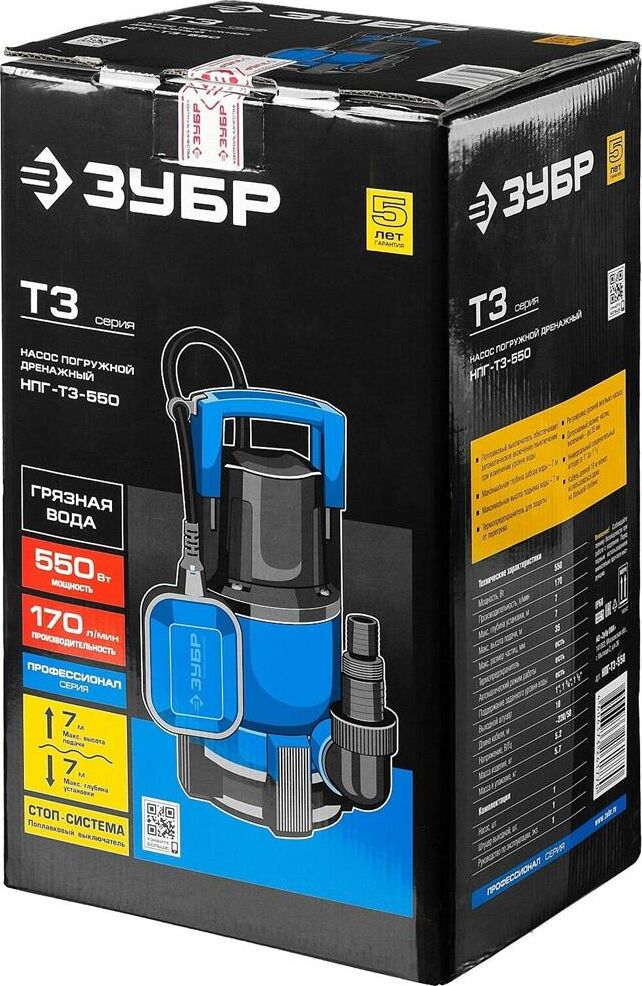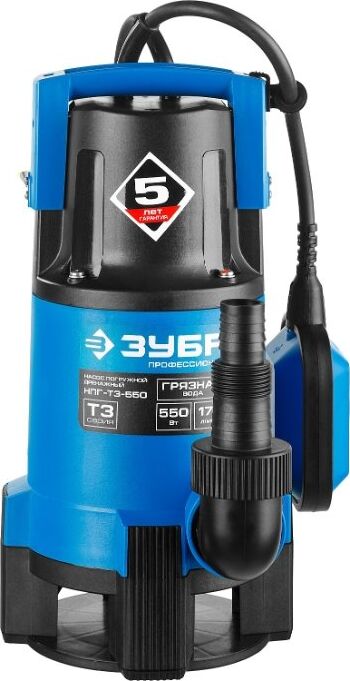ЗУБР НПГ-Т3-550 Насос погружной дренажный для грязной воды 550 Вт, 170 л/мин