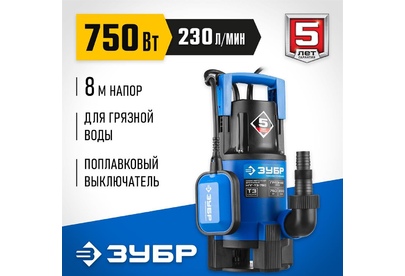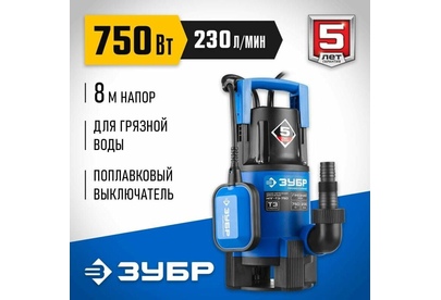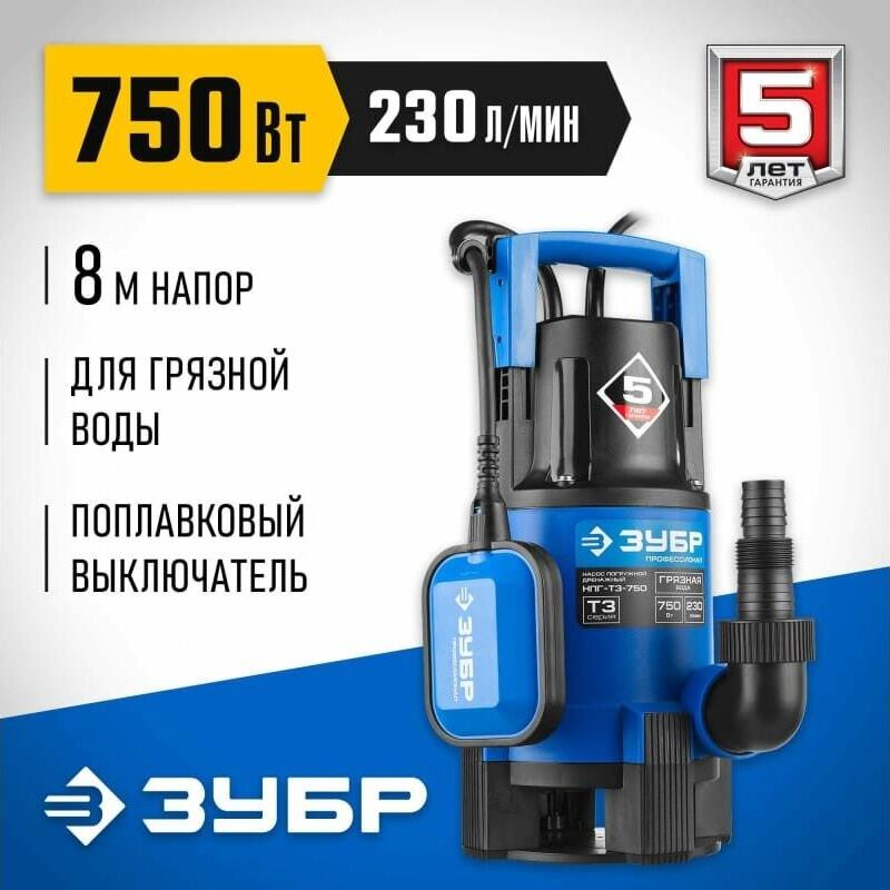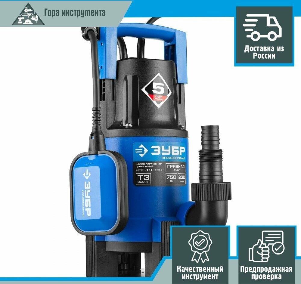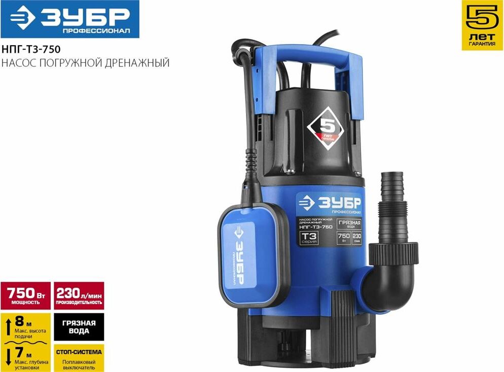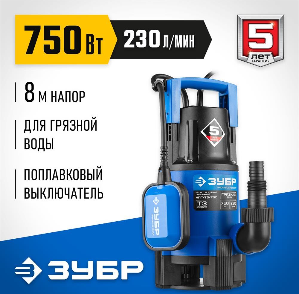 ЗУБР НПГ-Т3-750 Насос погружной дренажный для грязной воды 750 Вт, 230 л/мин