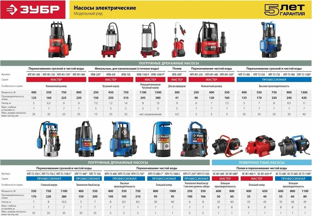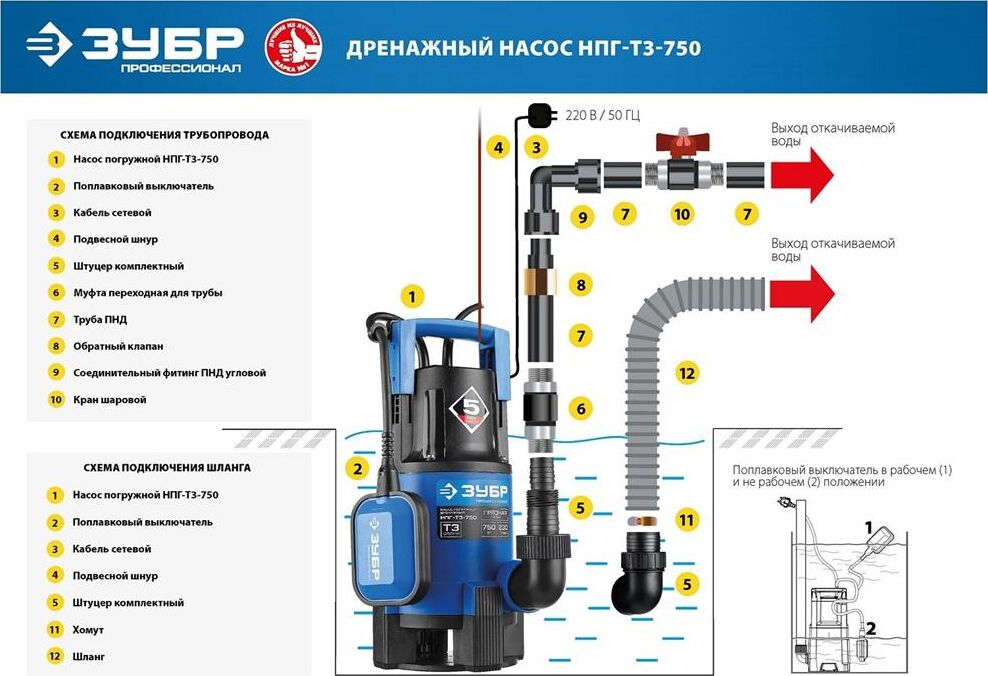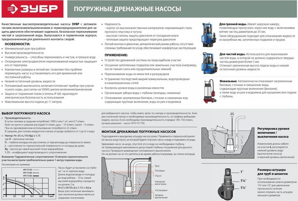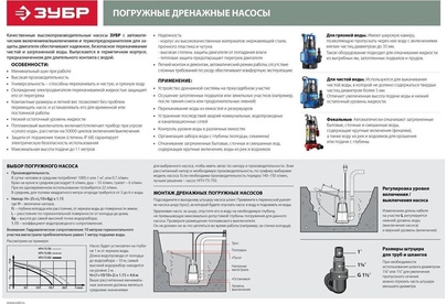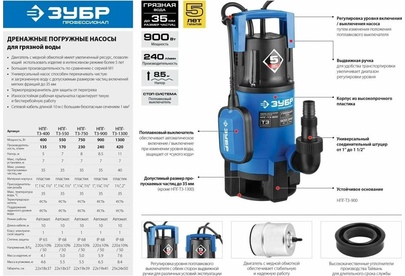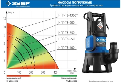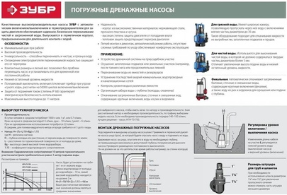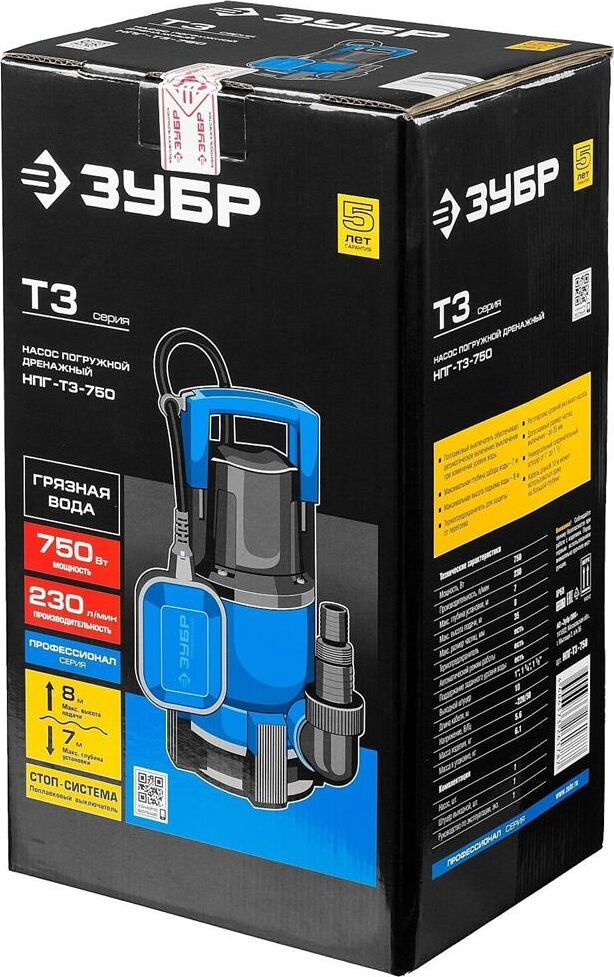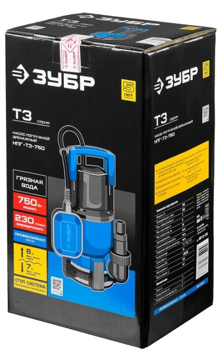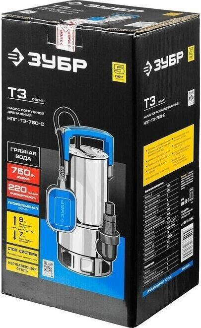 ЗУБР НПГ-Т3-750 Насос погружной дренажный для грязной воды 750 Вт, 230 л/мин