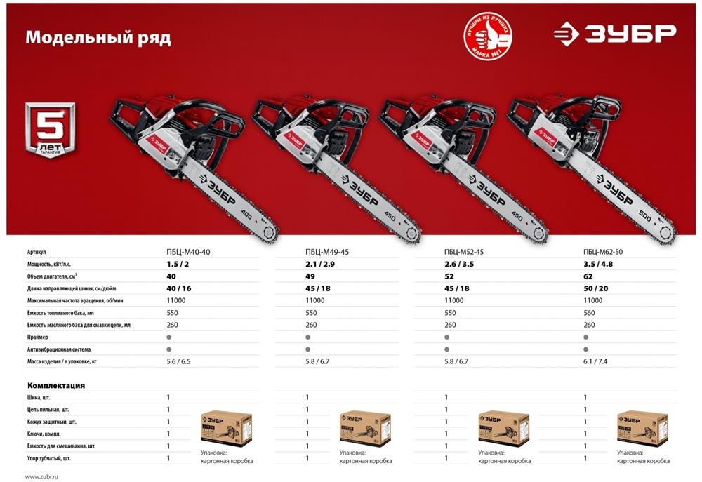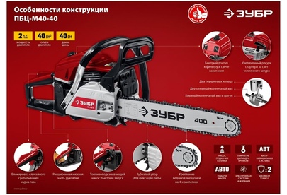 ЗУБР ПБЦ-М40-40 бензопила, 40 см3, шина 40 см