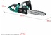 Мощность, Вт1800. Частота вращения на холостом ходу, об/мин7000. Скорость движения цепи, м/с13. Длина шины, см35. Шаг цепи, дюйм3/8. Ширина паза, мм0.050. Количество звеньев 52. Система быстрого натяжения цепи нет. Время срабатывания тормоза цепи, с0.12. Объем маслобака, мл200. Расположение двигателя поперечное. Защита от перегрузкиесть. Напряжение, В/Гц220-240/50.