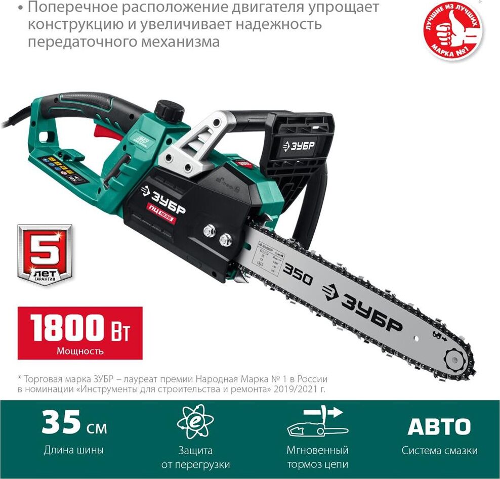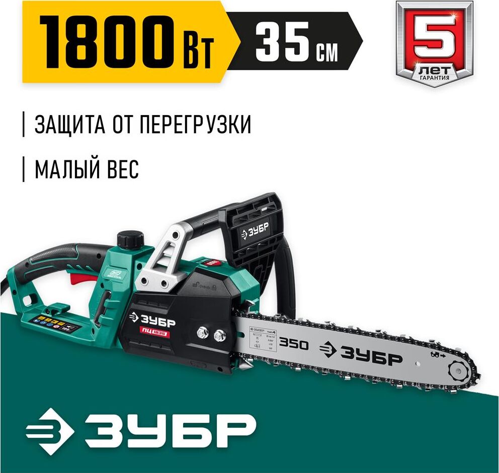 ЗУБР ПЦ-1835 1800 Вт, 35 см шина, пила цепная электрическая