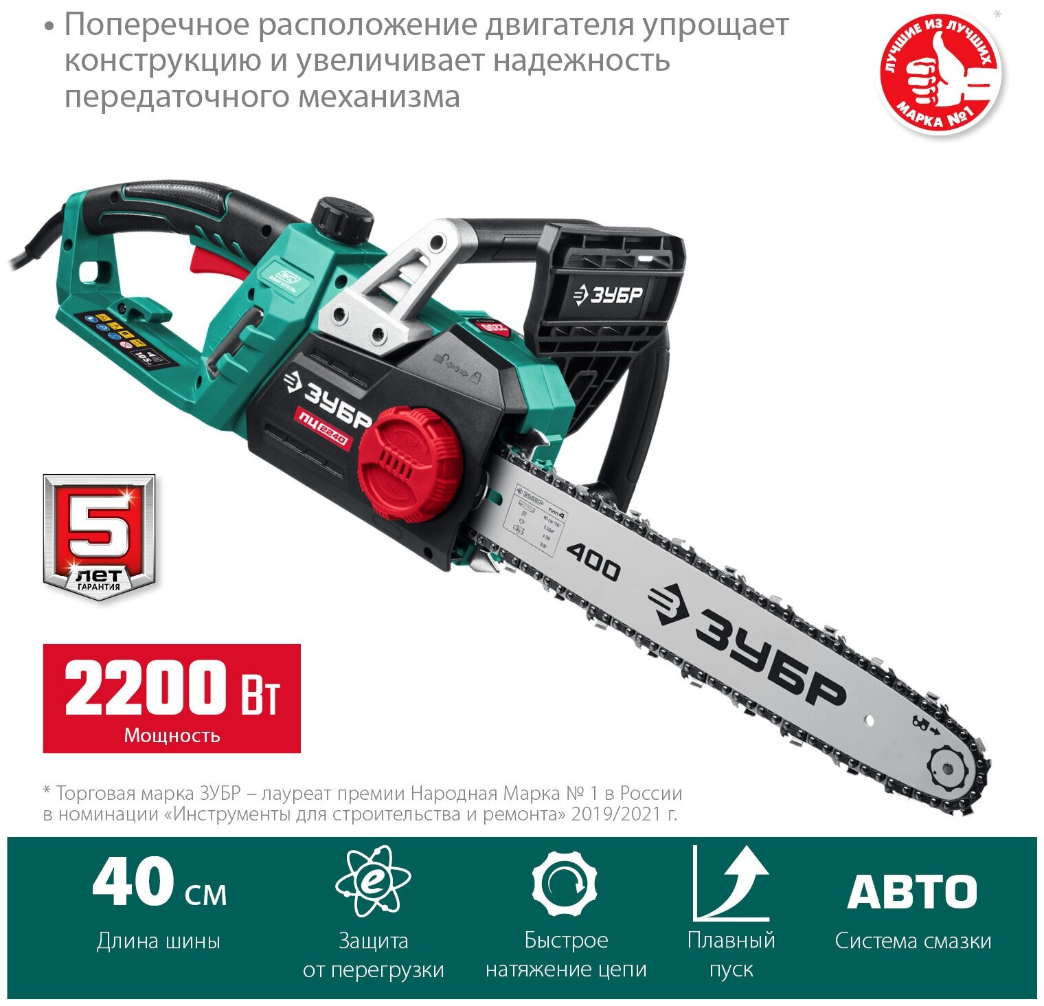 ЗУБР ПЦ-2240 2200 Вт, 40 см шина, пила цепная электрическая