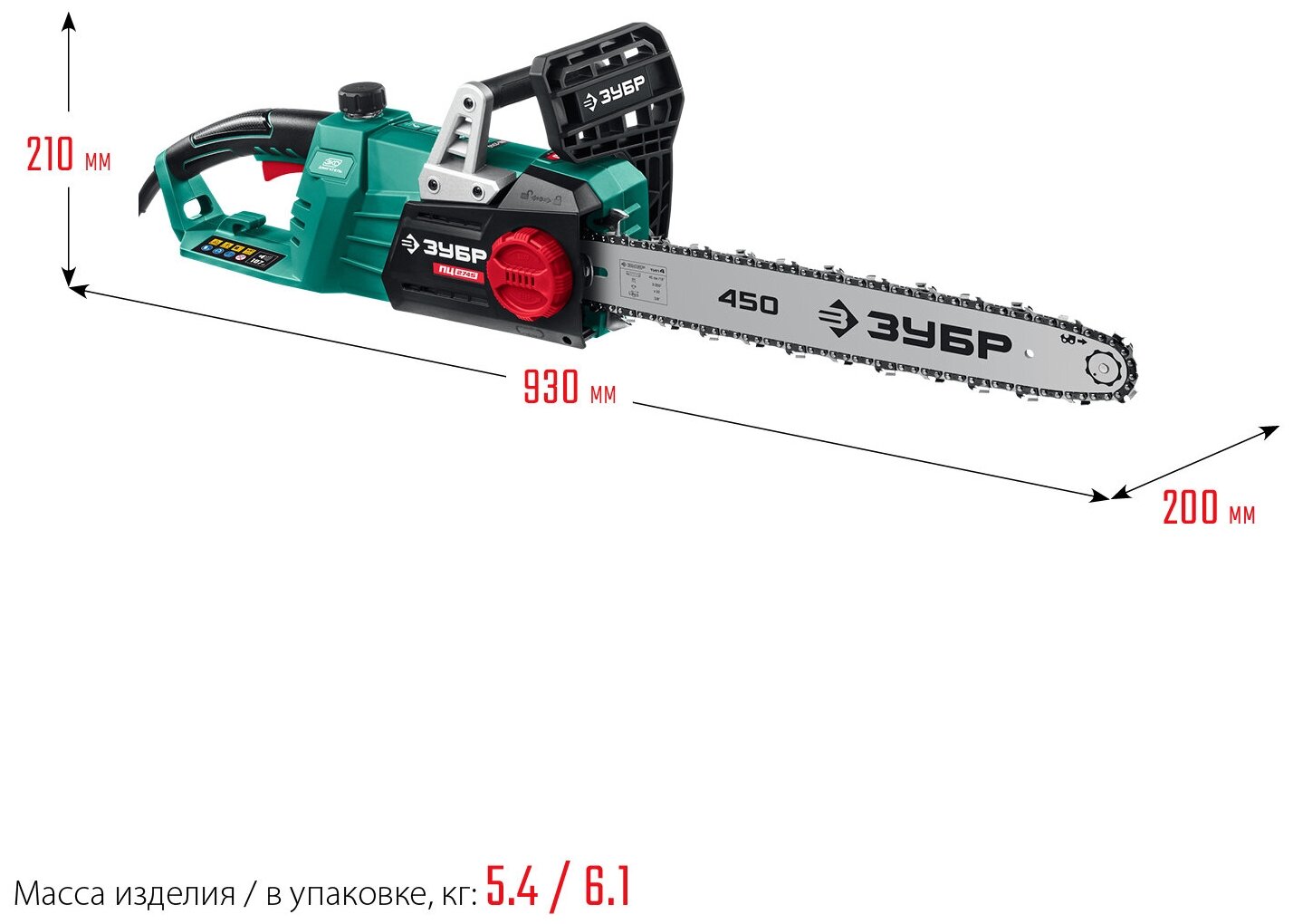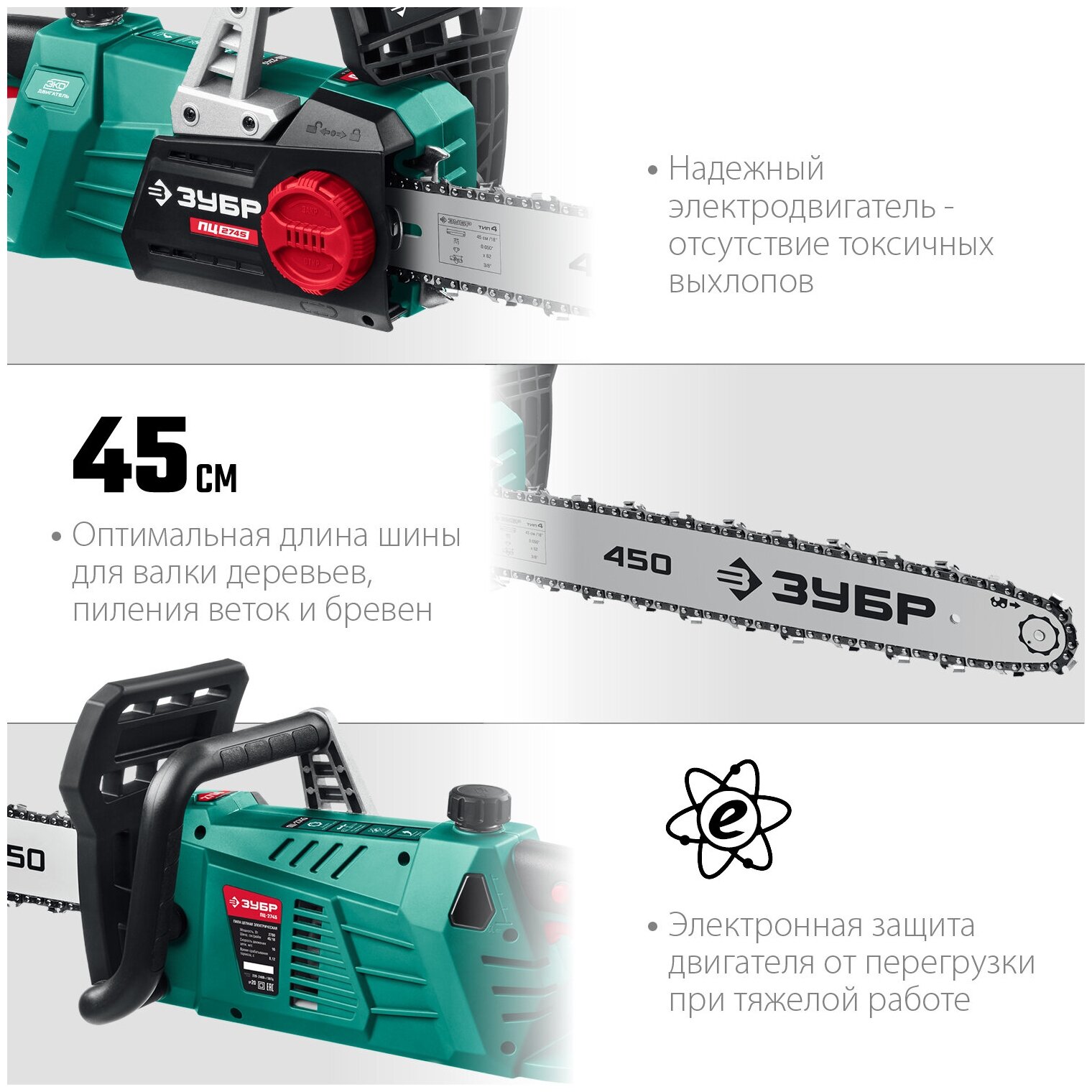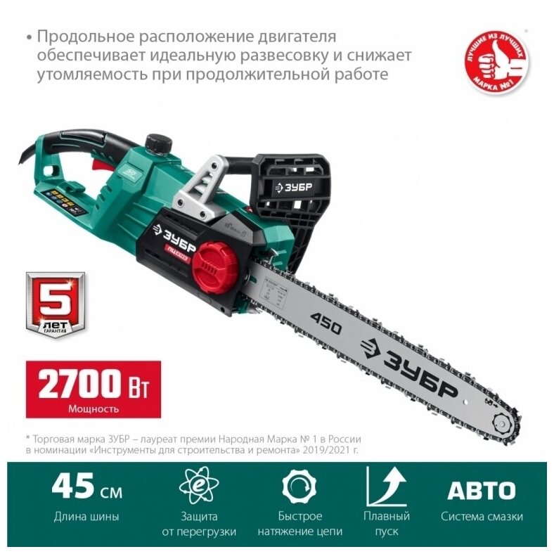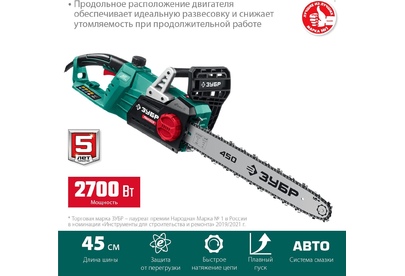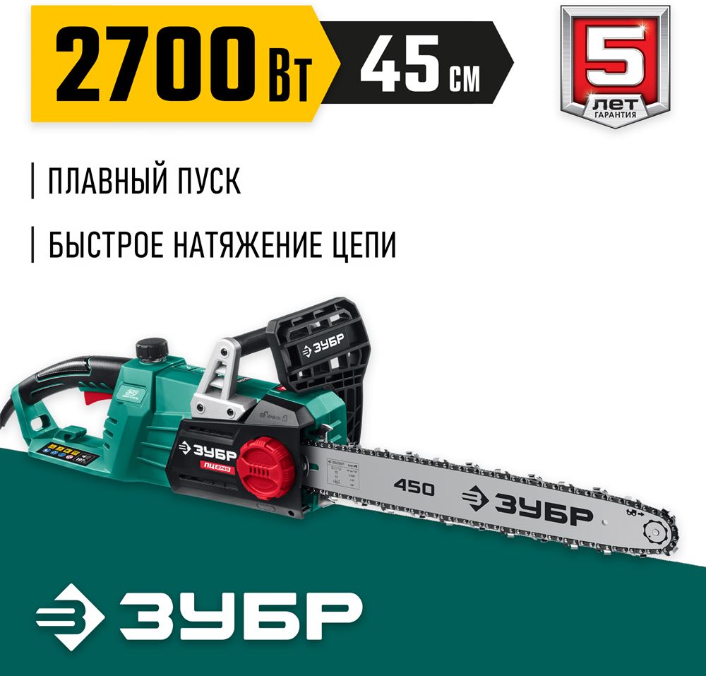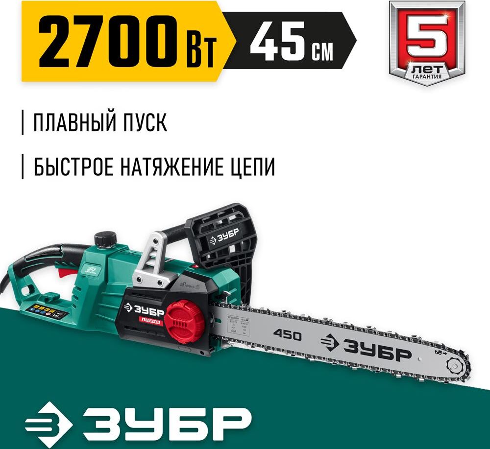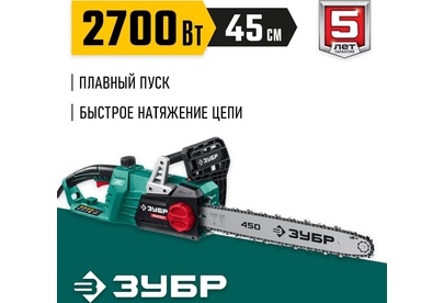 ЗУБР ПЦ-2745 2700 Вт, 45 см шина, пила цепная электрическая
