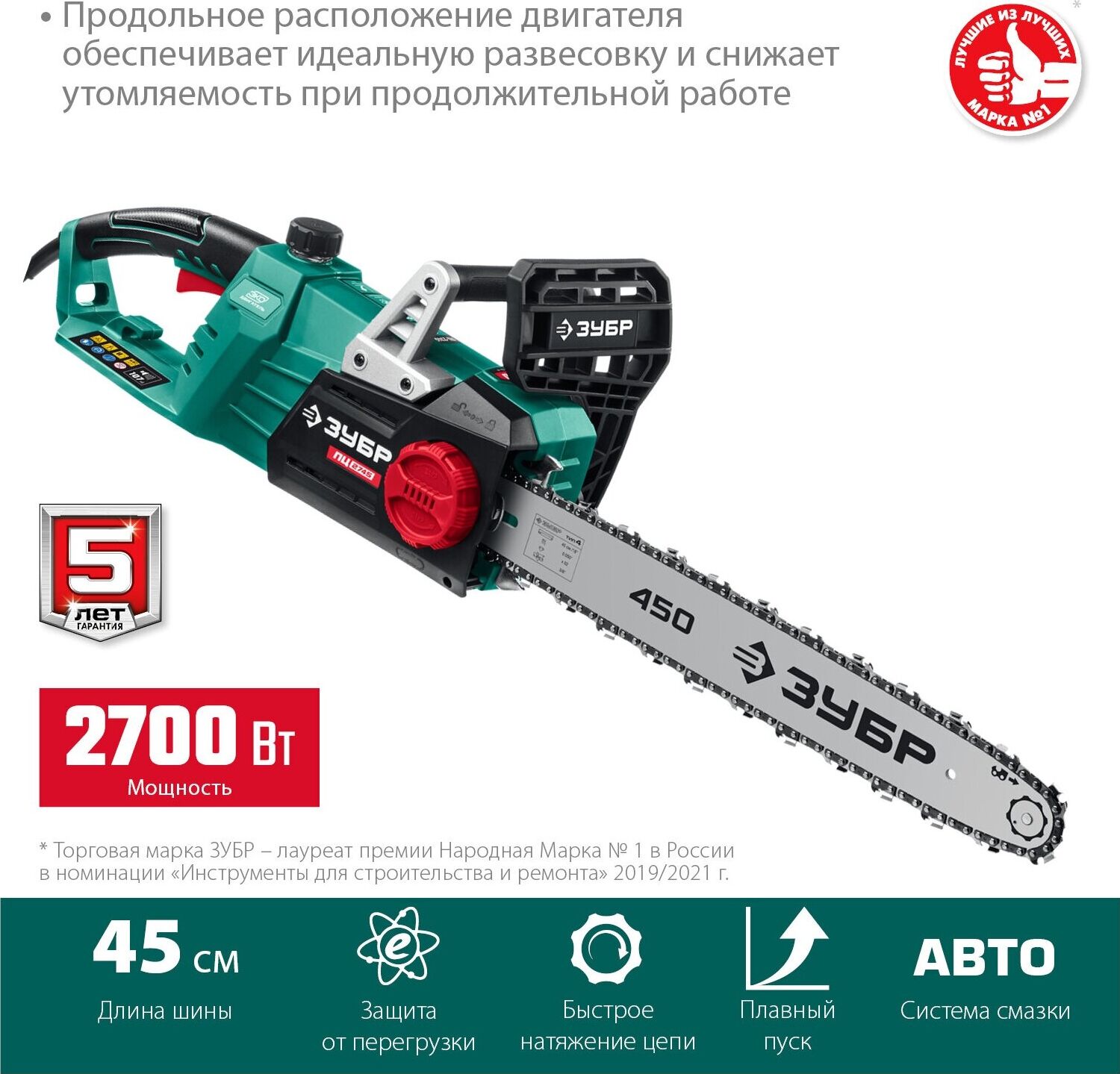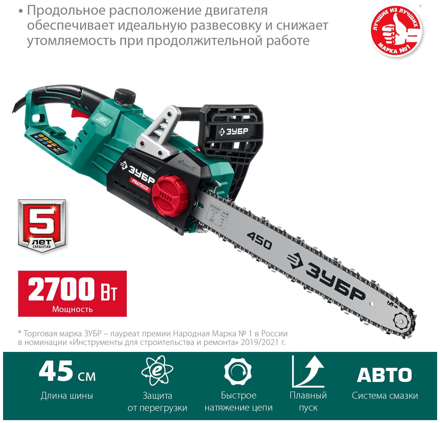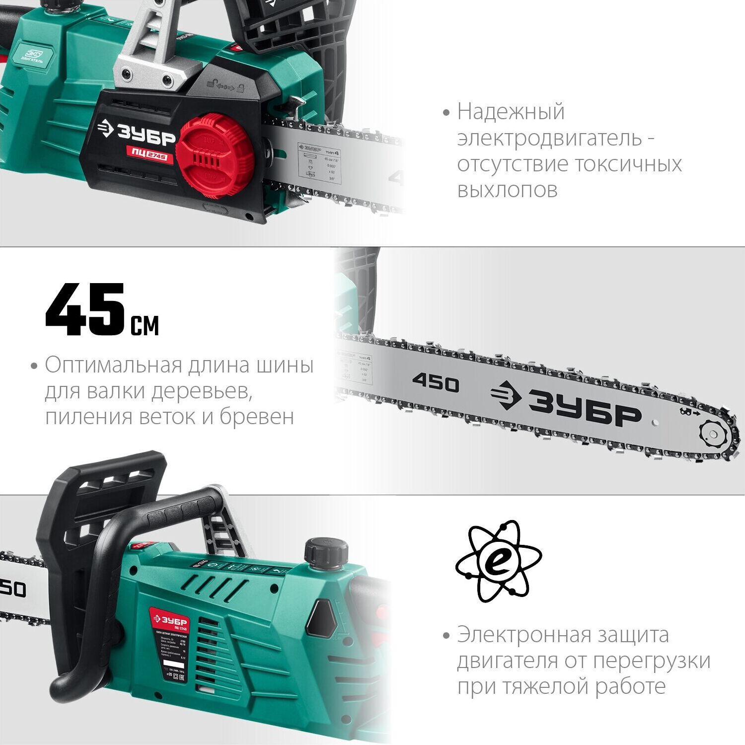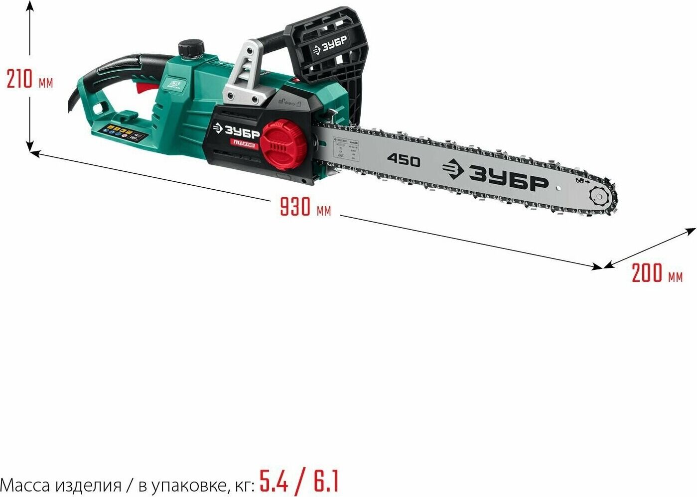 ЗУБР ПЦ-2745 2700 Вт, 45 см шина, пила цепная электрическая