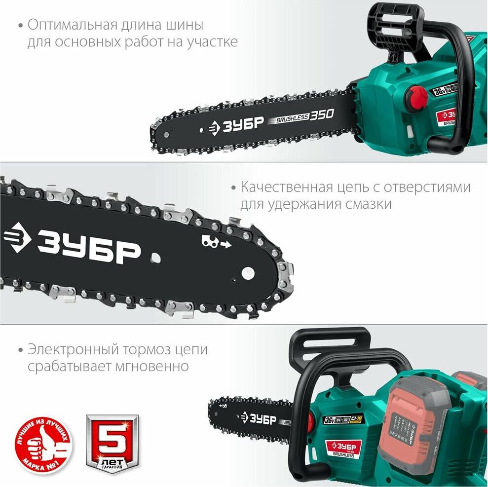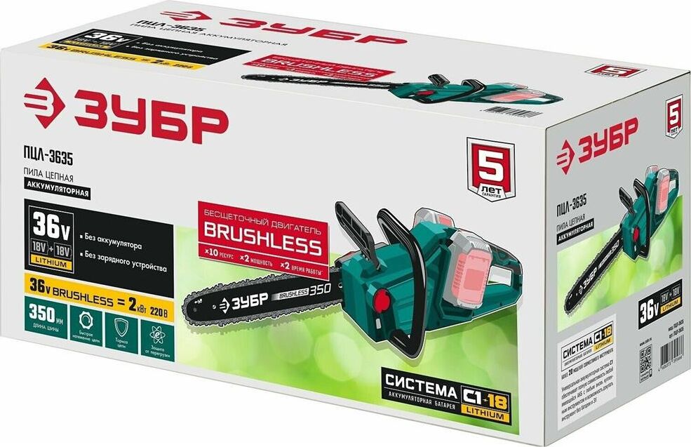 ЗУБР ПЦЛ-3635 36В бесщеточная пила цепная, без АКБ .