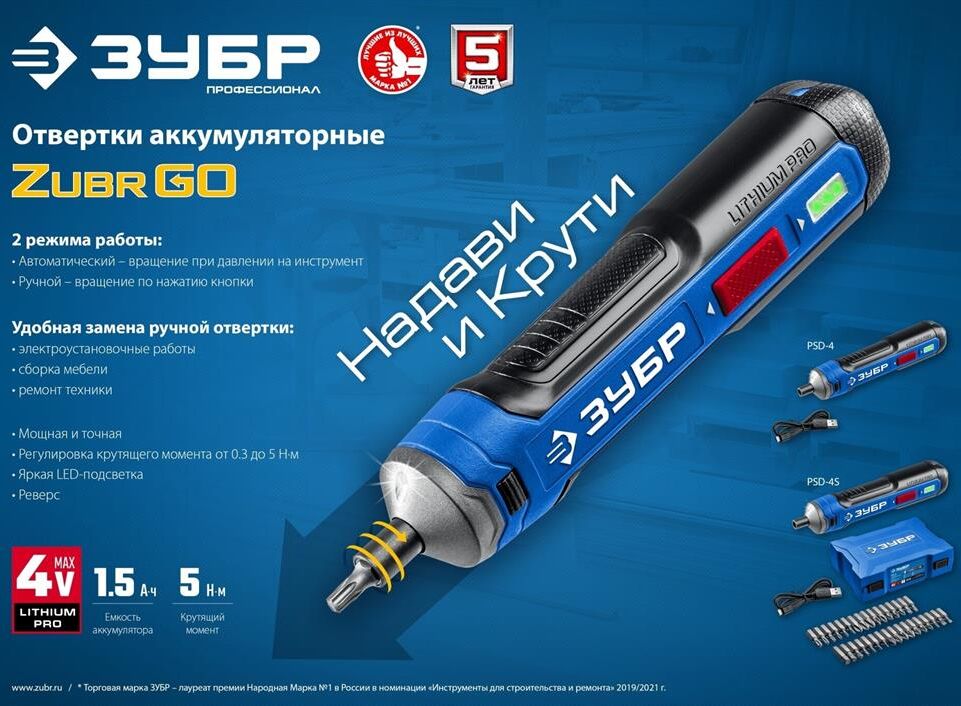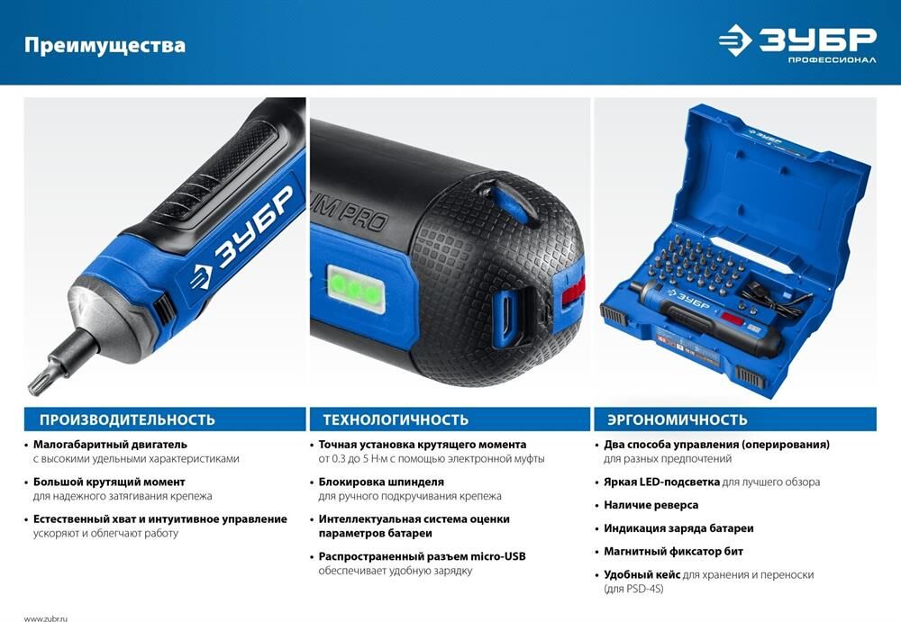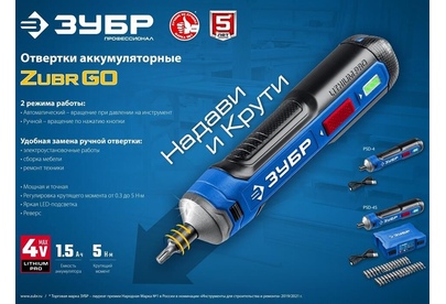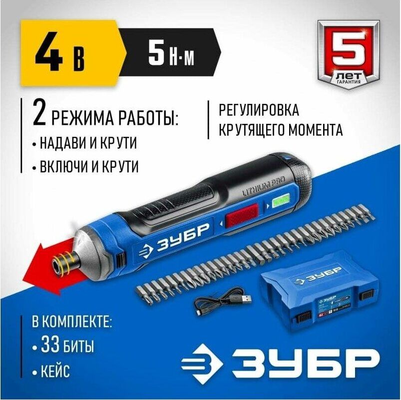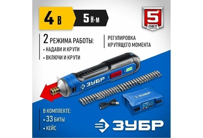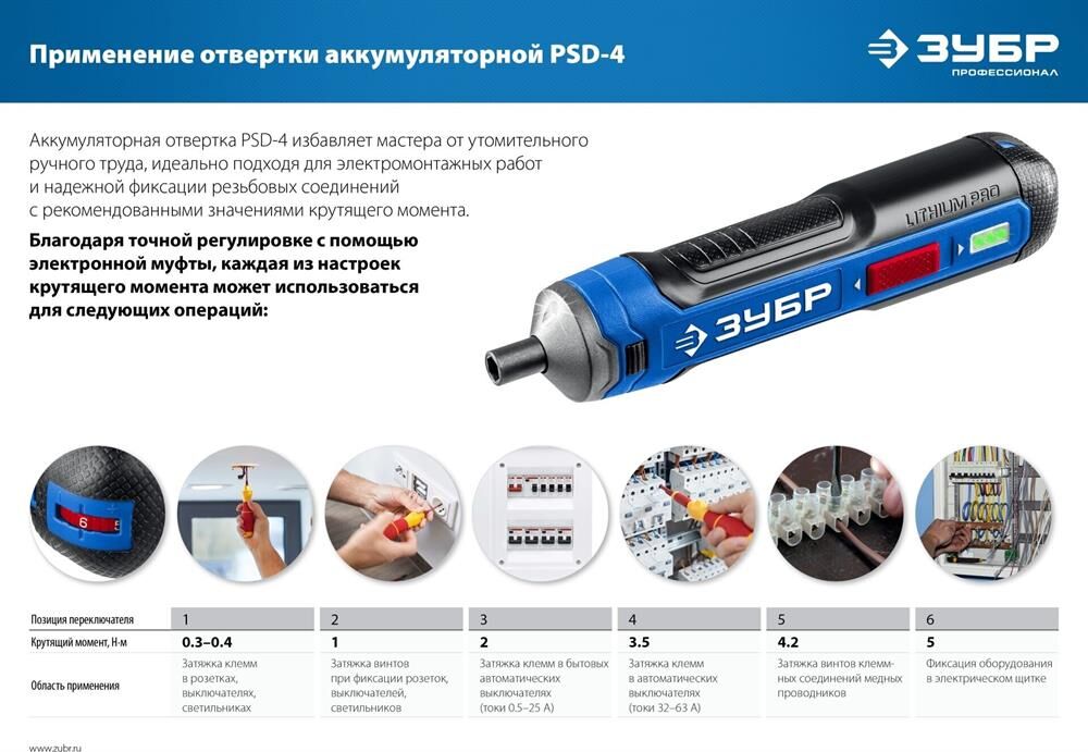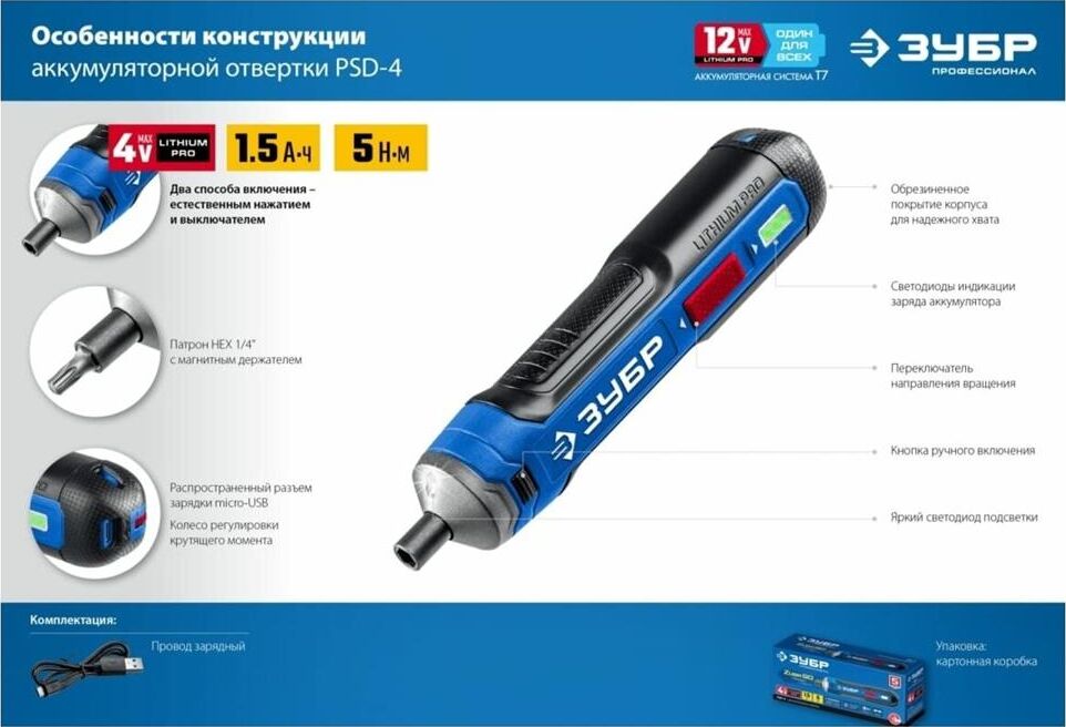 ЗУБР PSD-4 Профессионал PSD-4 отвертка аккумуляторная 4 Vmax, в коробке