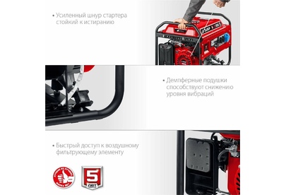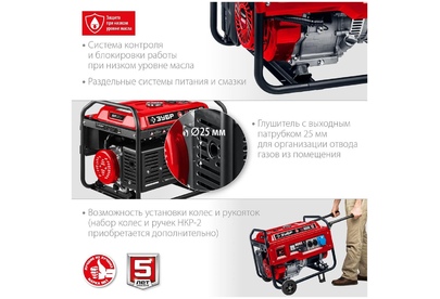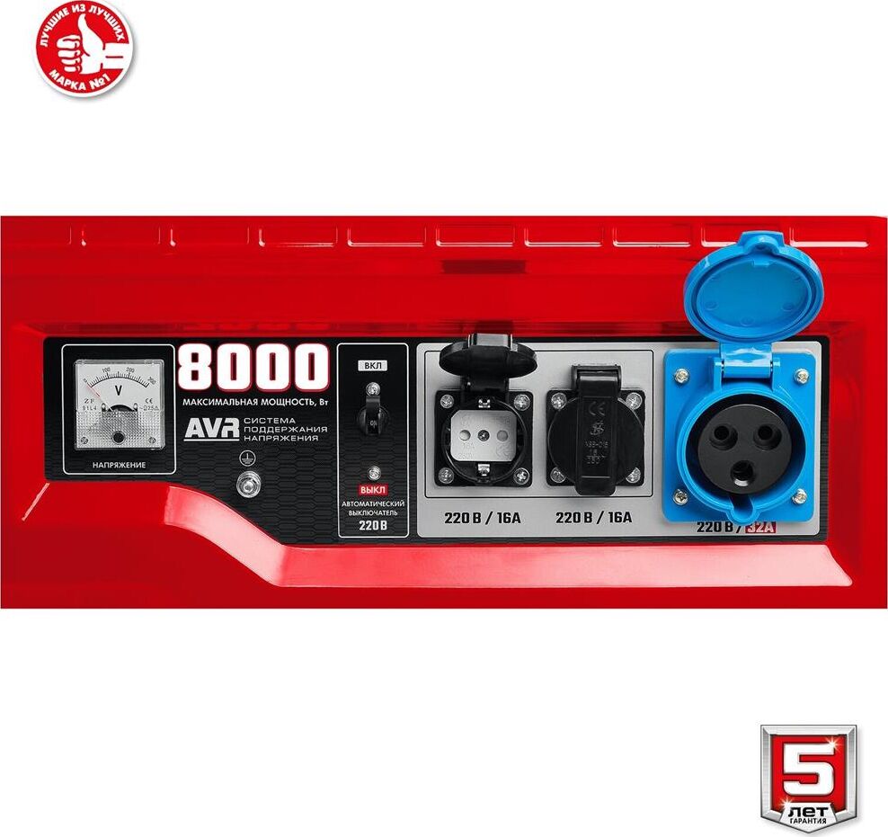 Вид топлива: бензин Аи92. Выход 12V: нет. Датчик масла: есть. Индикатор уровня топлива: есть. Колеса и ручки: нет. Контейнерный: нет. Контроль напряжения: AVR. Счетчик моточасов: нет. Тип двигателя: 4-х тактный. Тип электростанции: мобильные. Уровень шума, дБ: 74. Эл. выходы 380/220/12, шт: -/2/-. Минимальный заказ: 1. Max мощность, кВт: 8. Мощность номинальная при 220 В, кВт: 7.5. Напряжение, В: 220. Стартер: ручной. Альтернатор: синхронный. Автозапуск (АВР): нет. Емкость топливного бака, л: 25. Вес, кг: 83.