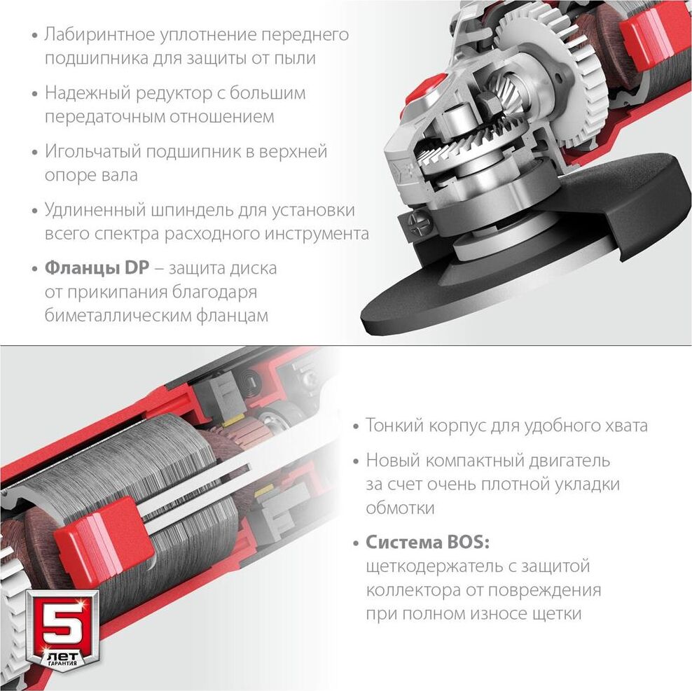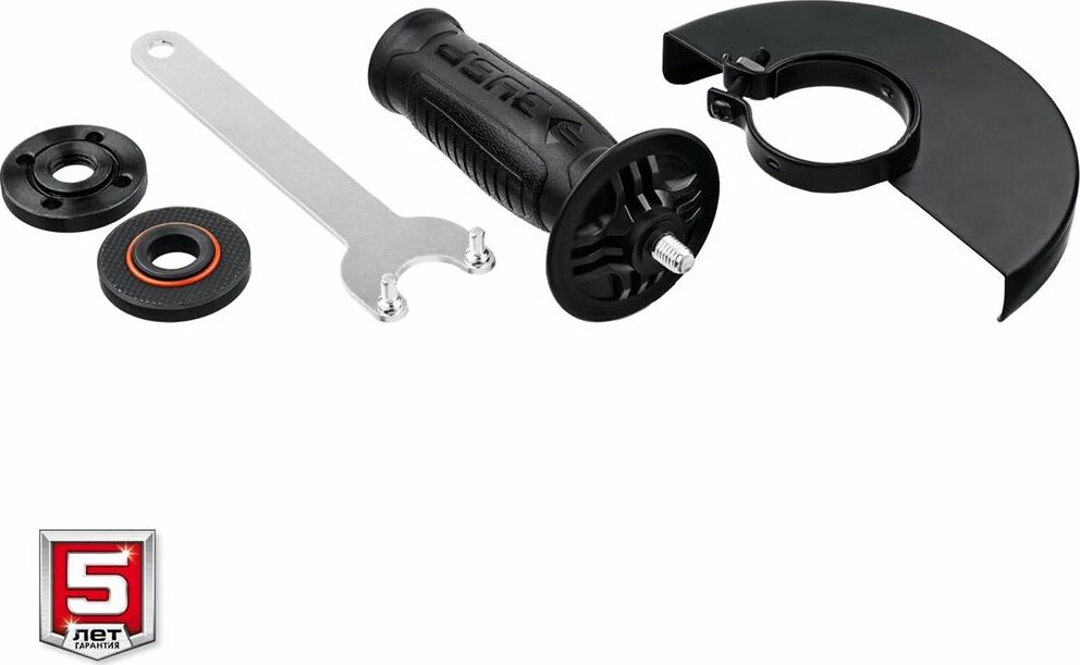 Углошлифовальная машина - 1 шт. Кожух защитный - 1 шт. Рукоятка дополнительная - 1 шт. Ключ специальный - 1 шт. Ключ имбусовый - 1 шт. Руководство по эксплуатации - 1 шт.