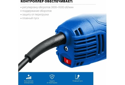 защита от перегрузок, плавный пуск, регулировка частоты вращения, система стабилизации оборотов, тормоз двигателя